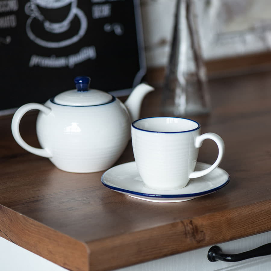 Чайник и чайная пара SEAWAVE в упаковке, 200мл и 500мл, фарфор
