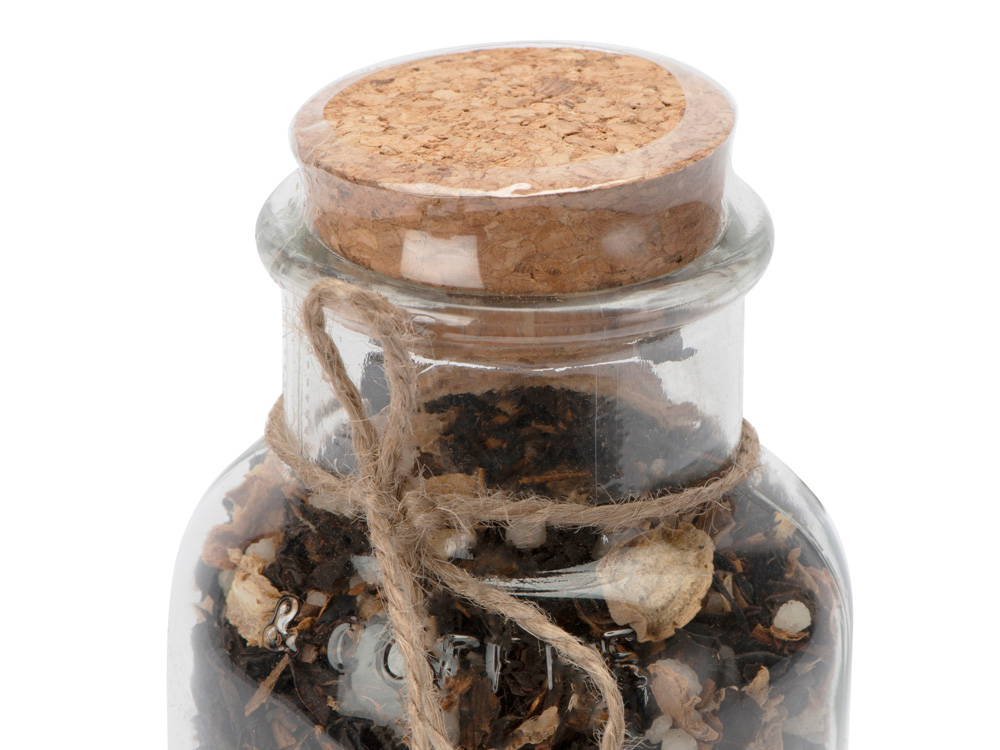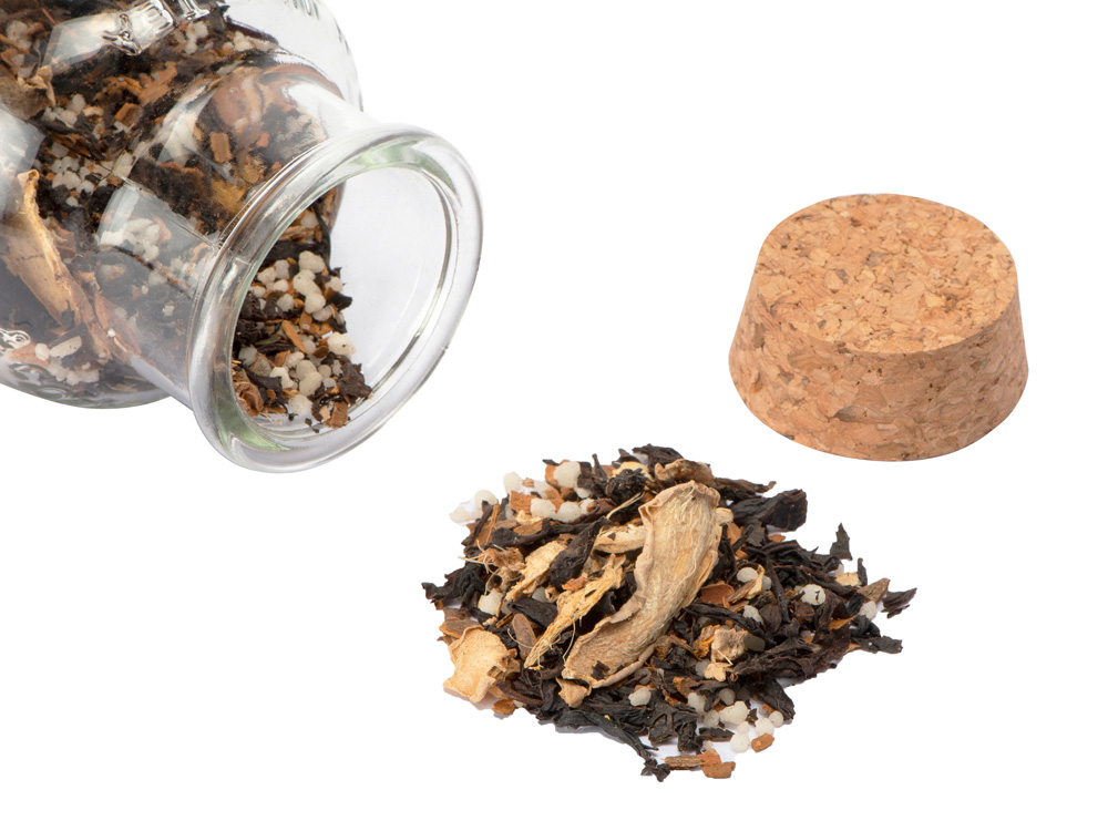 Состав: чай чёрный с имбирём и соком имбиря (чай чёрный байховый крупнолистовой, кусочки имбиря, сок имбиря), медовые гранулы, корица дроблёная. -