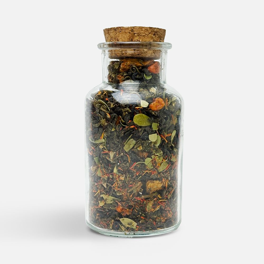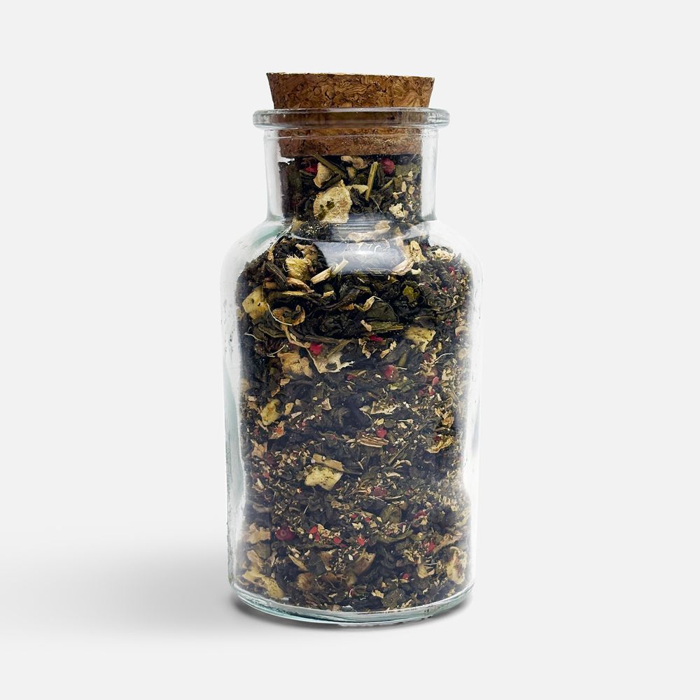Чай «Сокочай», зеленый с соком имбиря, с кусочками имбиря, апельсина и медом