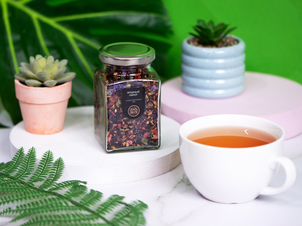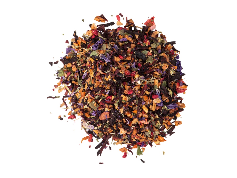 Купаж на основе каркаде с добавлением кусочков яблок, клубники, малины и сушёной черники. Добавки создают сладкий летний вкус, возвращая приятные воспоминания в любую погоду.
