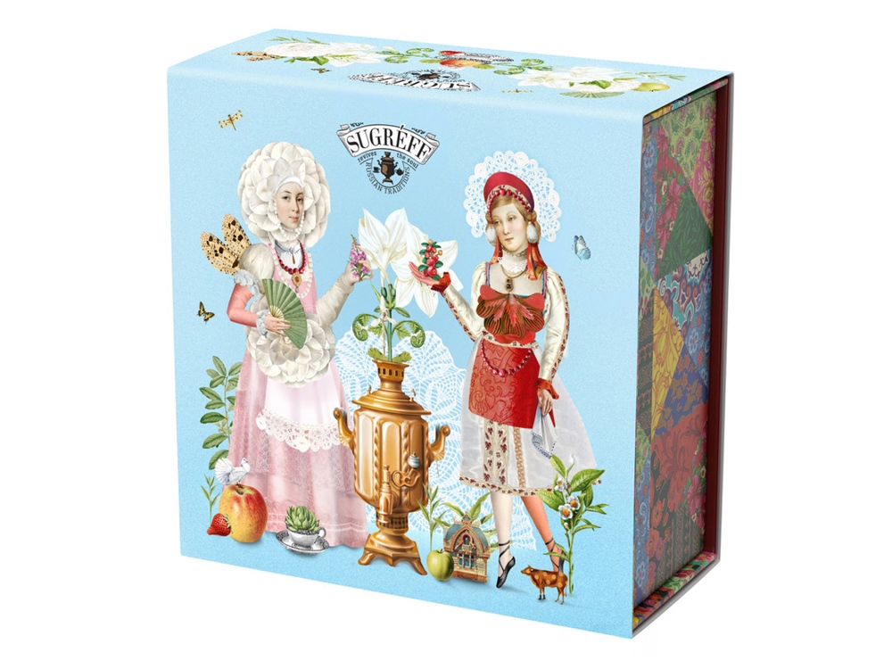 Купажи чая составлены так, чтобы сочетать вкус и аромат отборных сортов китайского и индийского чай с красотой разноцветных лепестков календулы, мальвы, цветов яблони, жасмина, акации и других. Внутри шкатулки находится мини-открытка, которую покупатель может подписать.