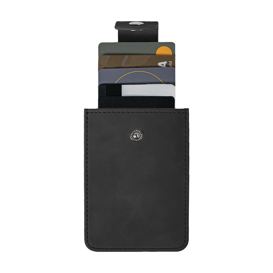 Чехол для карт, цвет черный, PUразмер 10.5х7.5 смВнутри выдвижной механизм с отделениями для 4 карт.Хлястик на кнопке.Упаковка - пластиковый пакет -