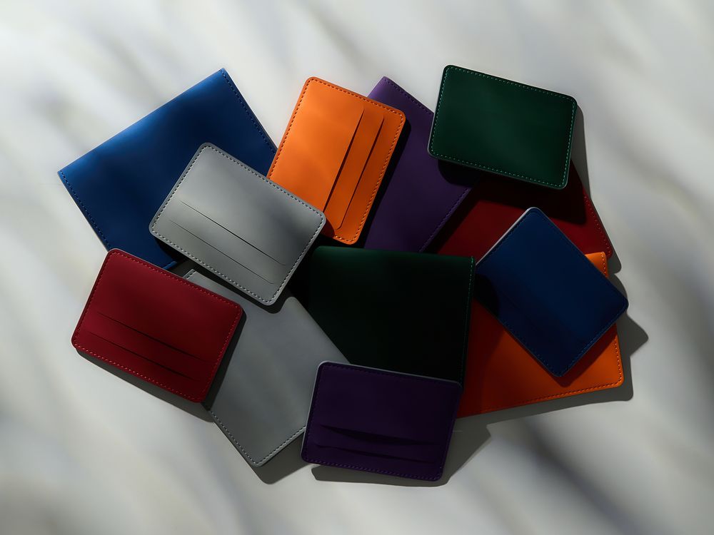4 отделения для кредитных карт и одно для сложенных купюр.