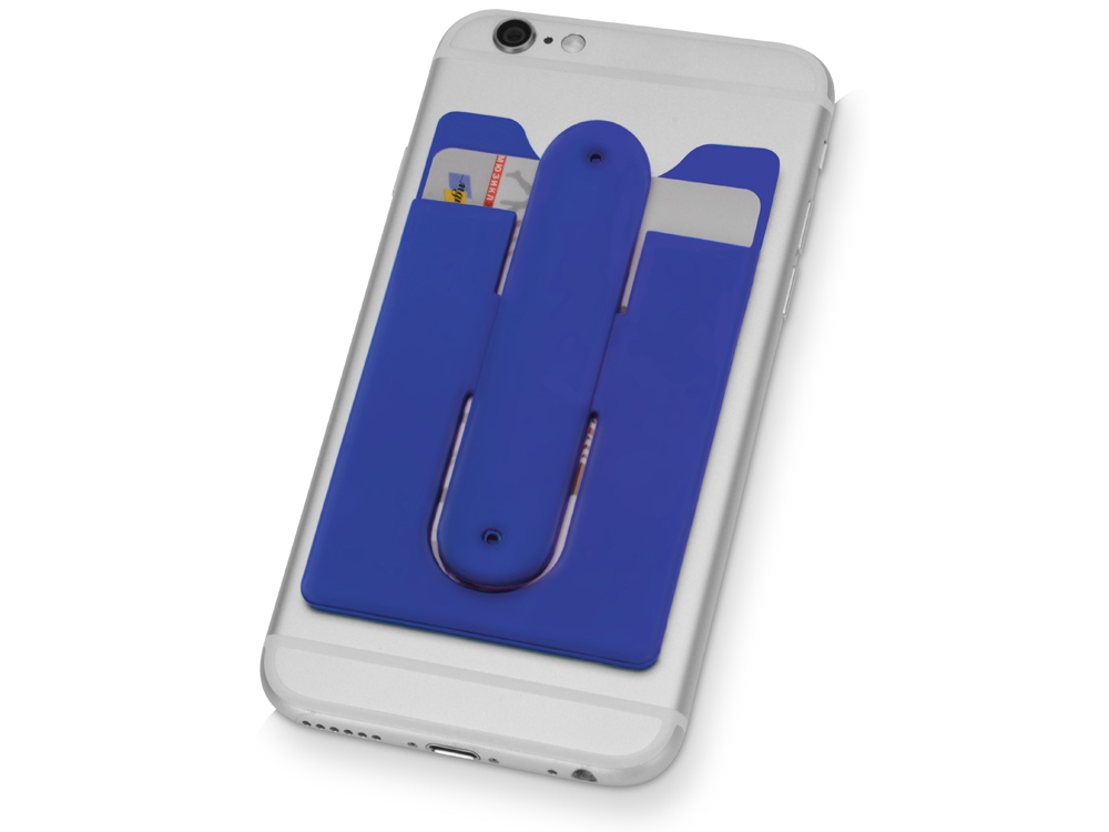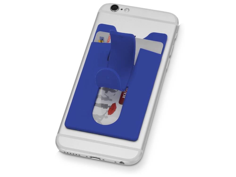 Чехол для визиток и кредитных карт с функцией подставки. За счет клейкой основы прикрепляется к обратной стороне телефона или любой другой плоской поверхности. -