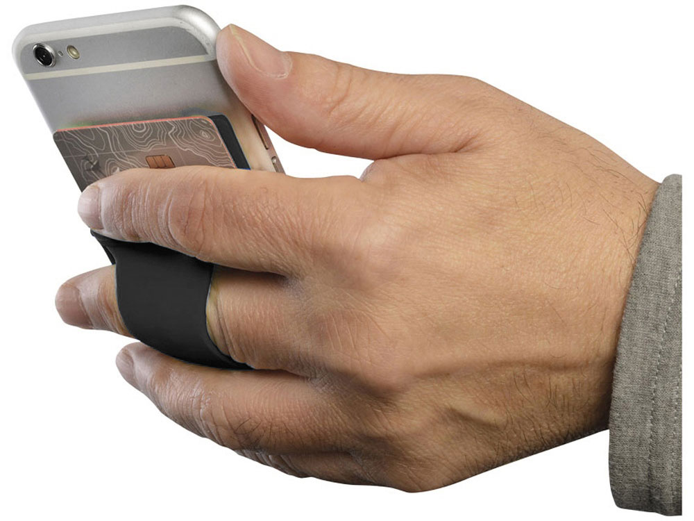 Силиконовый картхолдер для телефона с отверстием для пальца. Картхолдер можно легко прикрепить практически ко всем смартфонам с плоской панелью сзади при помощи липкой ленты. В него можно поместить кредитную карту/ идентификационную карту/ карту-ключ от номера / 5 визиток или банкноты. Отверстие для пальца для более удобного удержания телефона. -