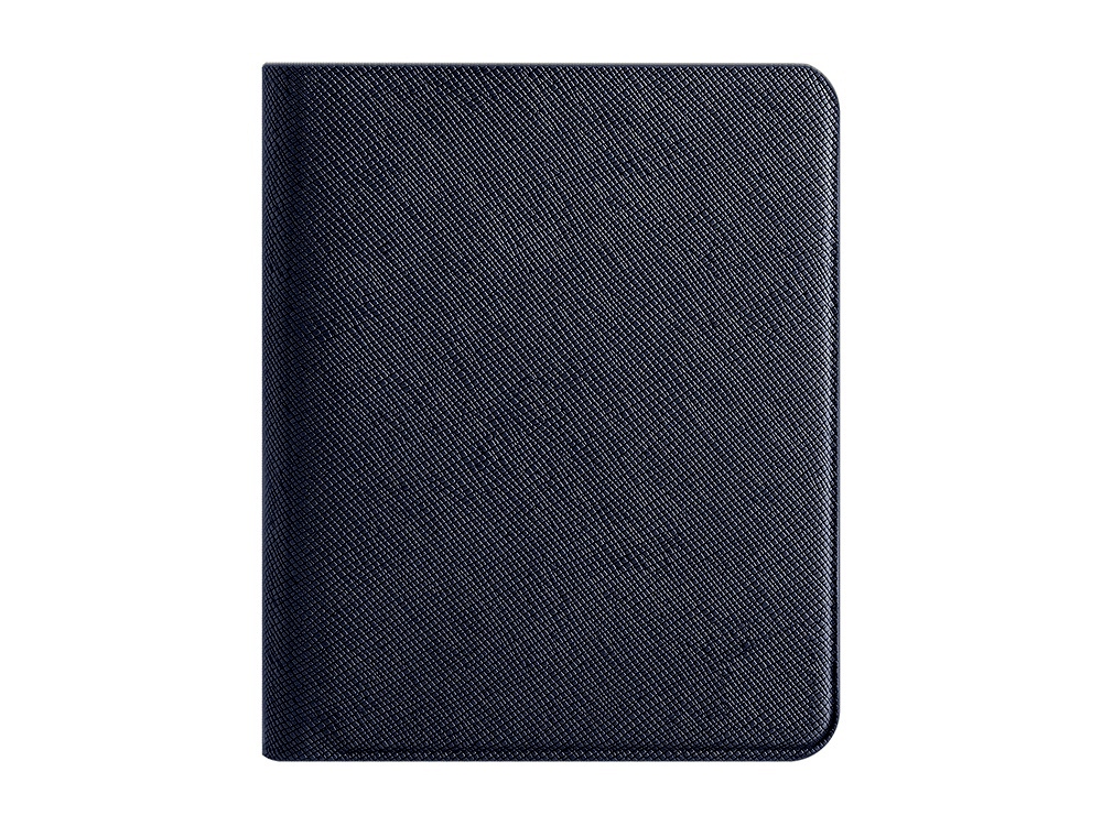 Внешние стороны выполнены из текстурной экокожи, на которой очень выгодно смотрится брендирование методом тиснения. Внутри использовано два вида искусственной кожи - софт-тач и сафьяно.