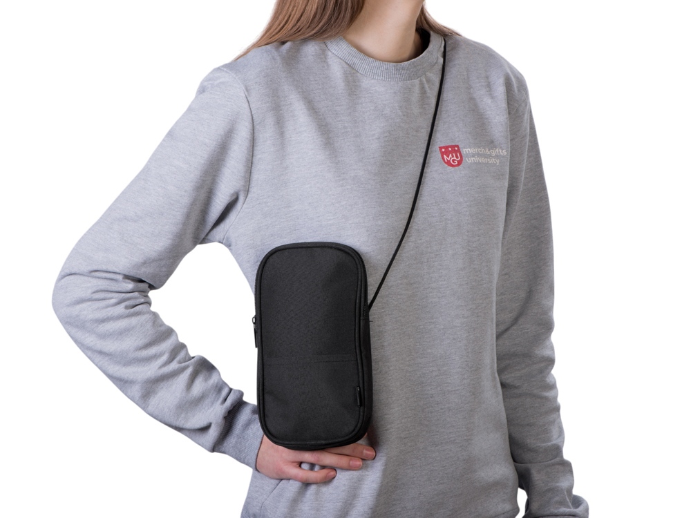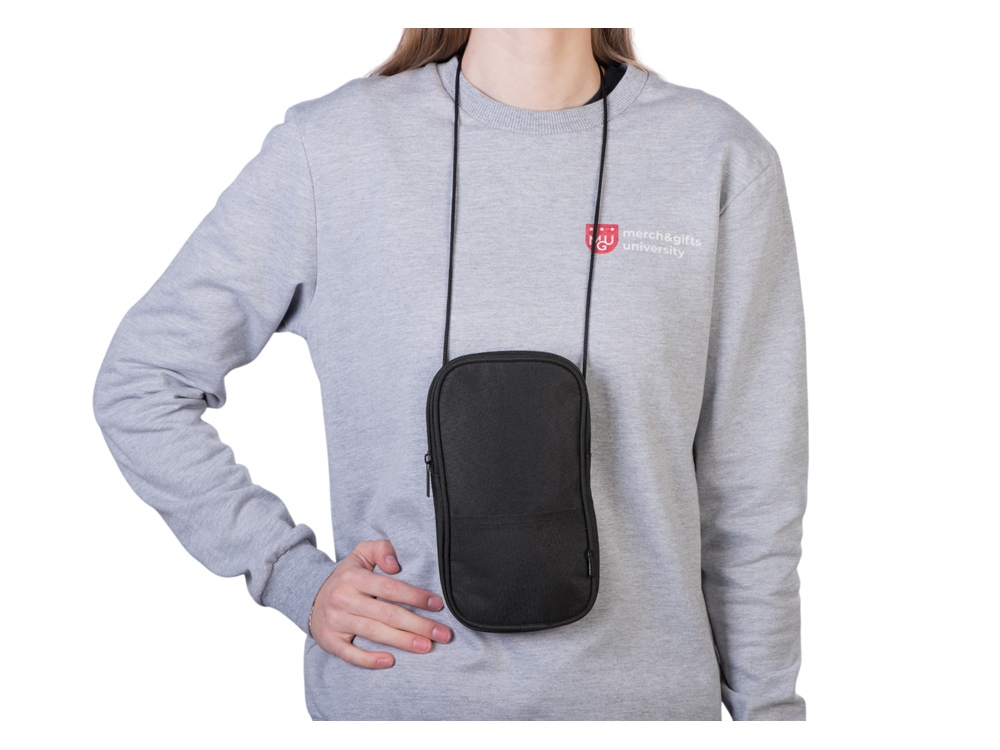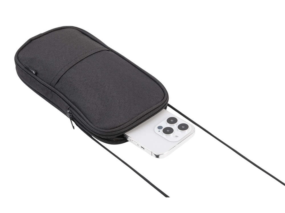 Мобильный чехол из полиэстера RPET. Основное отделение с застежкой-молнией. Внешний карман. В комплект входит шнурок для переноски. Длина шнурка 122 см. -