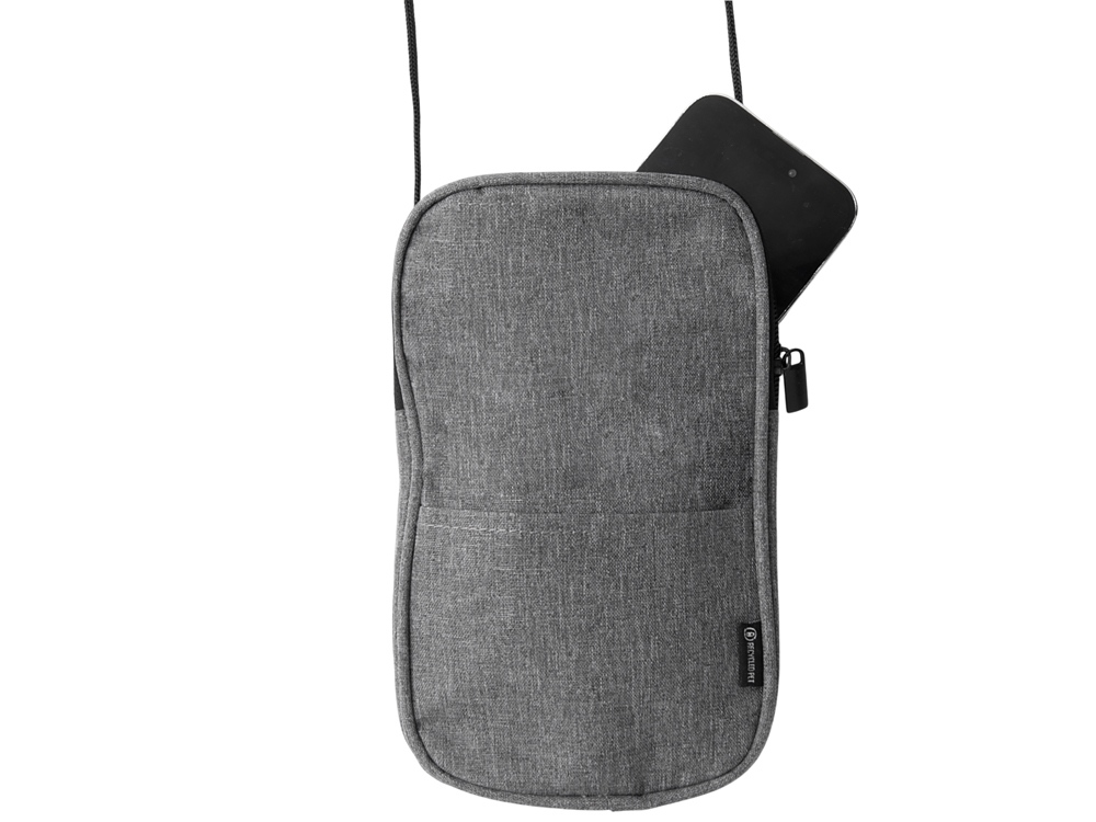 Мобильный чехол из полиэстера RPET. Основное отделение с застежкой-молнией. Внешний карман. В комплект входит шнурок для переноски. Длина шнурка 122 см. -