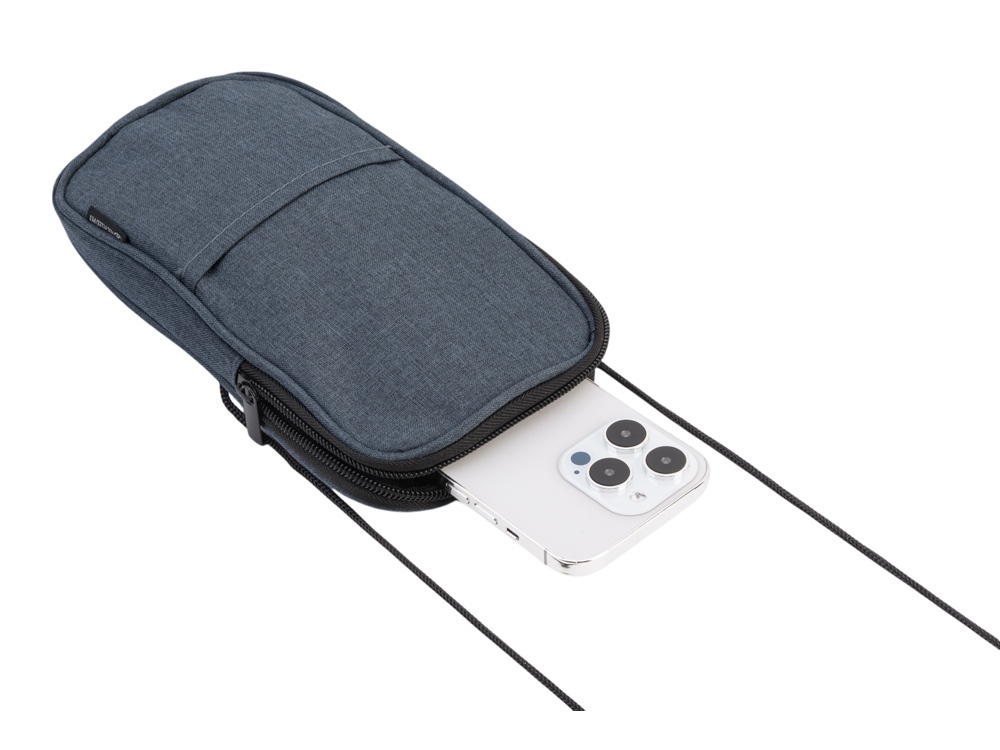 Мобильный чехол из полиэстера RPET. Основное отделение с застежкой-молнией. Внешний карман. В комплект входит шнурок для переноски. Длина шнурка 122 см. -