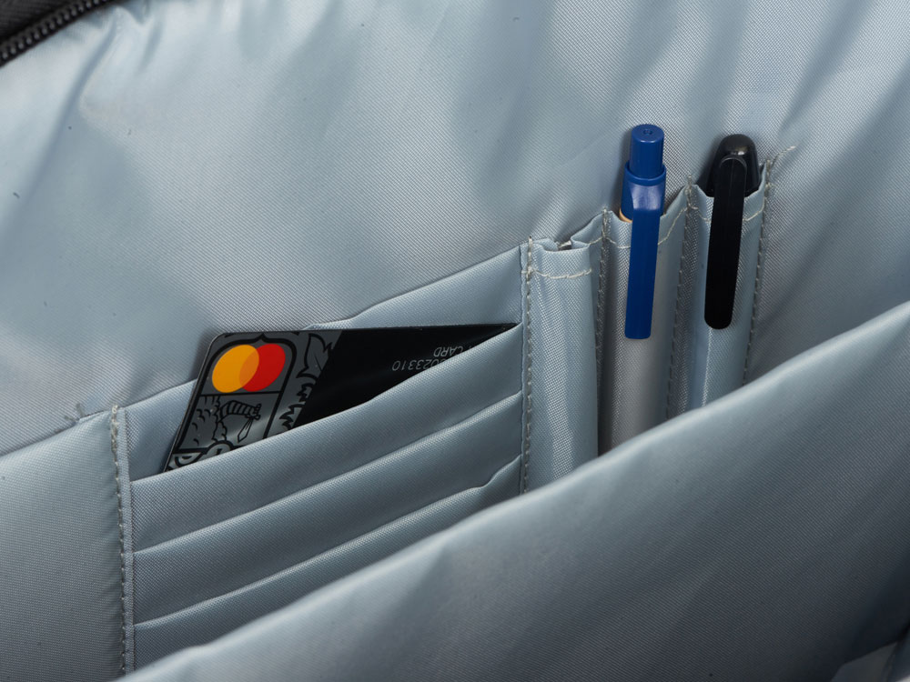 - малое отделение: 2 кармана для документов, органайзер для ручек, карт, телефона