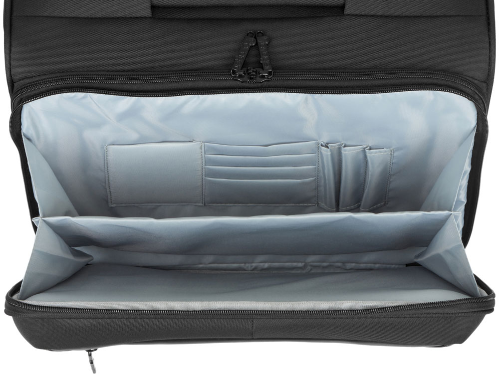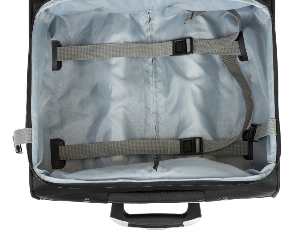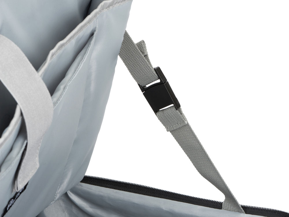 - большое отделение с карманами для ноутбука и планшета и пространством для одежды с фиксатором-пряжкой