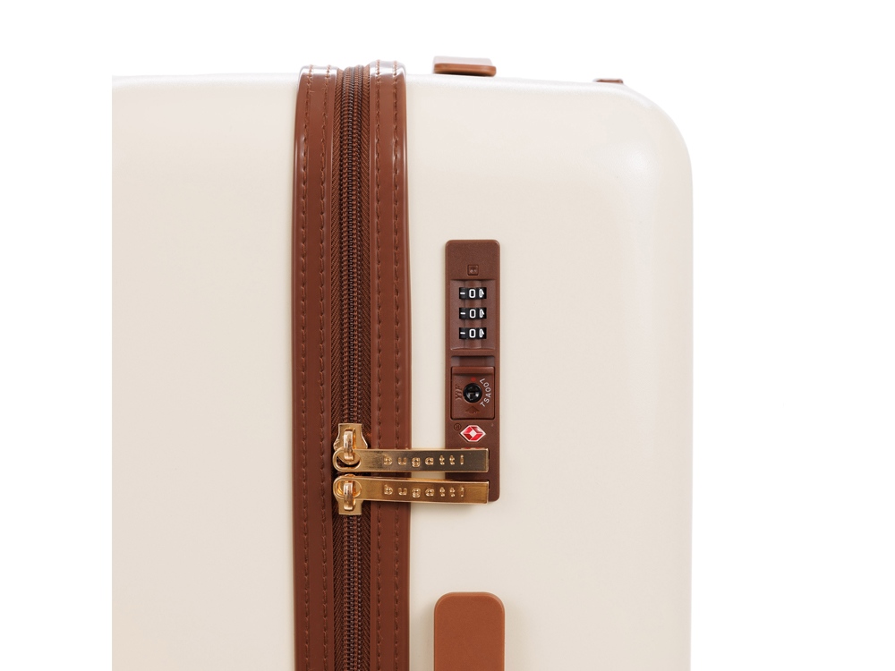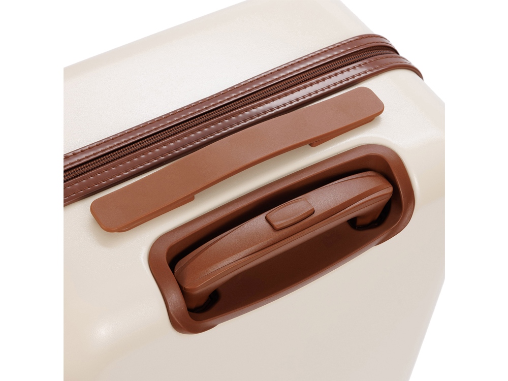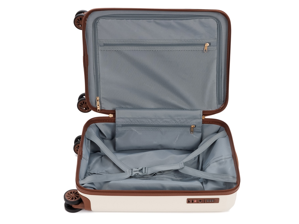 AMELIA воплощает собой неповторимый образ, сочетающий эстетику ретро с современной функциональностью. Вся товарная линейка представлена в великолепных темно-изумрудном и кремовом оттенках. Контрастные детали насыщенного коричневого цвета, бронзовые ручки и фурнитура идеально дополняют дизайн, подчеркивают индивидуальность и выразительность каждой модели. Изготовленные из высококачественного АБС-пластика и поликарбоната, чемоданы AMELIA обладают удивительной прочностью и легкостью. Четыре резиновых колеса с бесшумным ходом и возможностью поворота на 360° обеспечивают плавное передвижение по любой поверхности, сохраняя при этом полную маневренность. Интегрированный замок TSA с трехзначным кодом гарантирует защиту вашего багажа от несанкционированного доступа. Продуманная концепция больших отделений с перегородкой на молнии и дополнительными карманами максимально оптимизирует использование внутреннего пространства. Легкая телескопическая ручка с несколькими положениями фиксации обеспечивает комфорт в использовании для людей разного роста. Удобные ручки сбоку и на дне корпуса облегчают загрузку и выгрузку чемодана. Боковые держатели позволяют разместить дополнительные дорожные аксессуары.