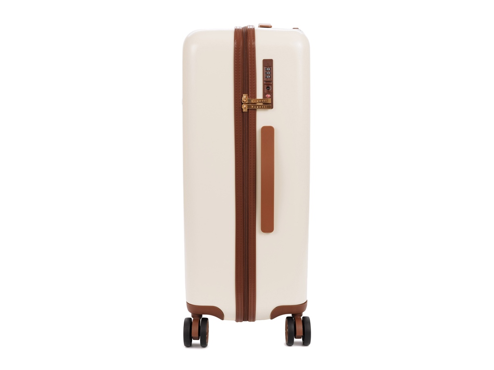 AMELIA воплощает собой неповторимый образ, сочетающий эстетику ретро с современной функциональностью. Вся товарная линейка представлена в великолепных темно-изумрудном и кремовом оттенках. Контрастные детали насыщенного коричневого цвета, бронзовые ручки и фурнитура идеально дополняют дизайн, подчеркивают индивидуальность и выразительность каждой модели. Изготовленные из высококачественного АБС-пластика и поликарбоната, чемоданы AMELIA обладают удивительной прочностью и легкостью. Четыре резиновых колеса с бесшумным ходом и возможностью поворота на 360° обеспечивают плавное передвижение по любой поверхности, сохраняя при этом полную маневренность. Интегрированный замок TSA с трехзначным кодом гарантирует защиту вашего багажа от несанкционированного доступа. Продуманная концепция больших отделений с перегородкой на молнии и дополнительными карманами максимально оптимизирует использование внутреннего пространства. Легкая телескопическая ручка с несколькими положениями фиксации обеспечивает комфорт в использовании для людей разного роста. Удобные ручки сбоку и на дне корпуса облегчают загрузку и выгрузку чемодана. Боковые держатели позволяют разместить дополнительные дорожные аксессуары.