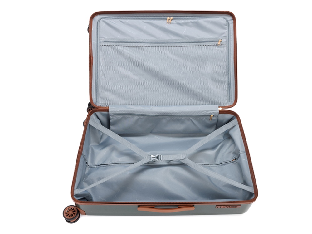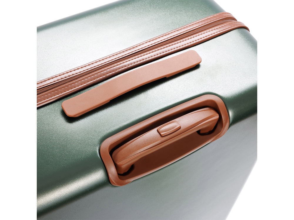 AMELIA воплощает собой неповторимый образ, сочетающий эстетику ретро с современной функциональностью. Вся товарная линейка представлена в великолепных темно-изумрудном и кремовом оттенках. Контрастные детали насыщенного коричневого цвета, бронзовые ручки и фурнитура идеально дополняют дизайн, подчеркивают индивидуальность и выразительность каждой модели. Изготовленные из высококачественного АБС-пластика и поликарбоната, чемоданы AMELIA обладают удивительной прочностью и легкостью. Четыре резиновых колеса с бесшумным ходом и возможностью поворота на 360° обеспечивают плавное передвижение по любой поверхности, сохраняя при этом полную маневренность. Интегрированный замок TSA с трехзначным кодом гарантирует защиту вашего багажа от несанкционированного доступа. Продуманная концепция больших отделений с перегородкой на молнии и дополнительными карманами максимально оптимизирует использование внутреннего пространства. Легкая телескопическая ручка с несколькими положениями фиксации обеспечивает комфорт в использовании для людей разного роста. Удобные ручки сбоку и на дне корпуса облегчают загрузку и выгрузку чемодана. Боковые держатели позволяют разместить дополнительные дорожные аксессуары.