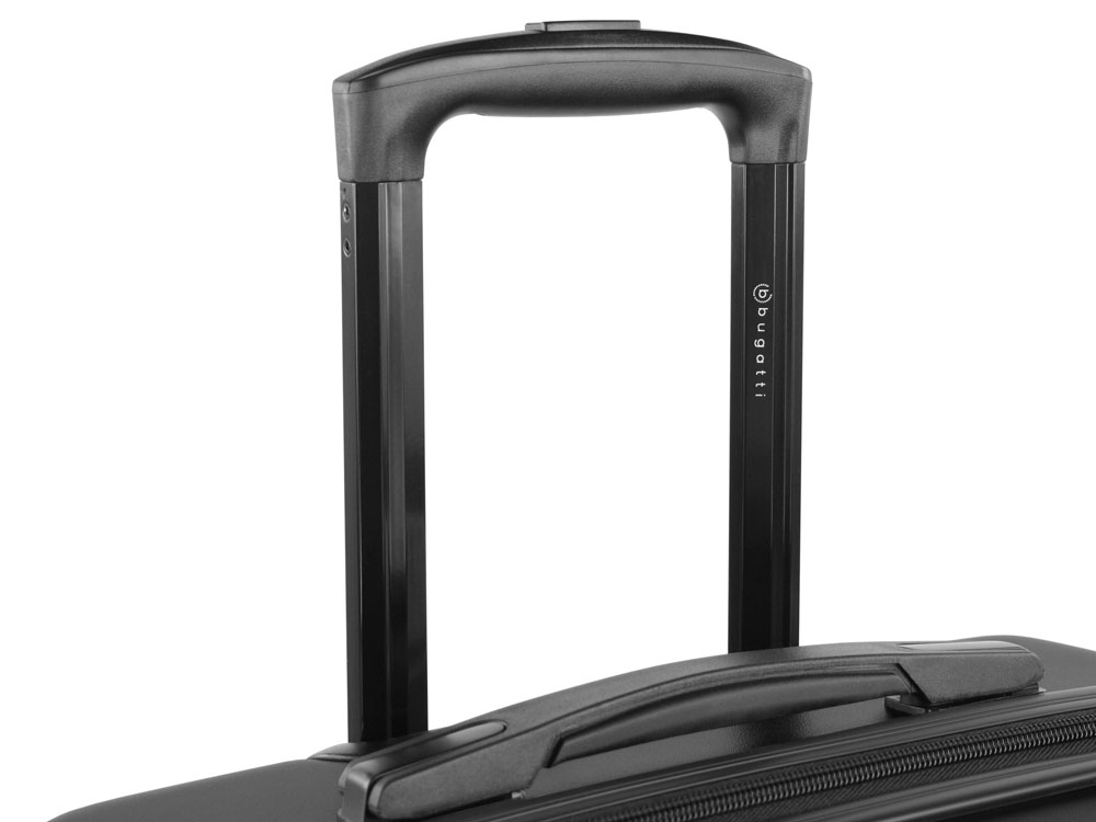 Серия Kallisto воплощает собой нашу страсть к путешествиям. Тонкие диагональные полосы и стильная поверхность с металлическим оттенком подчёркивают непринужденную привлекательность коллекции, представленной в чёрном цвете. Логотип Bugatti аккуратно встроен в металлический шильдик на корпусе. Четыре двойных резиновых колеса просты в управлении и очень удобны. Они могут вращаться на 360°, обеспечивая лёгкий ход по любой поверхности при сохранении полной манёвренности. Лёгкая выдвижная телескопическая ручка удобно фиксируется в нескольких положениях. Замок TSA с трехзначным кодом надёжно защищает содержимое багажа от несанкционированного доступа, а дополнительная ручка на дне корпуса облегчает загрузку и выгрузку чемодана. Продуманная концепция больших отделений с внутренней перегородкой на молнии позволяет максимально практично использовать внутреннее пространство.