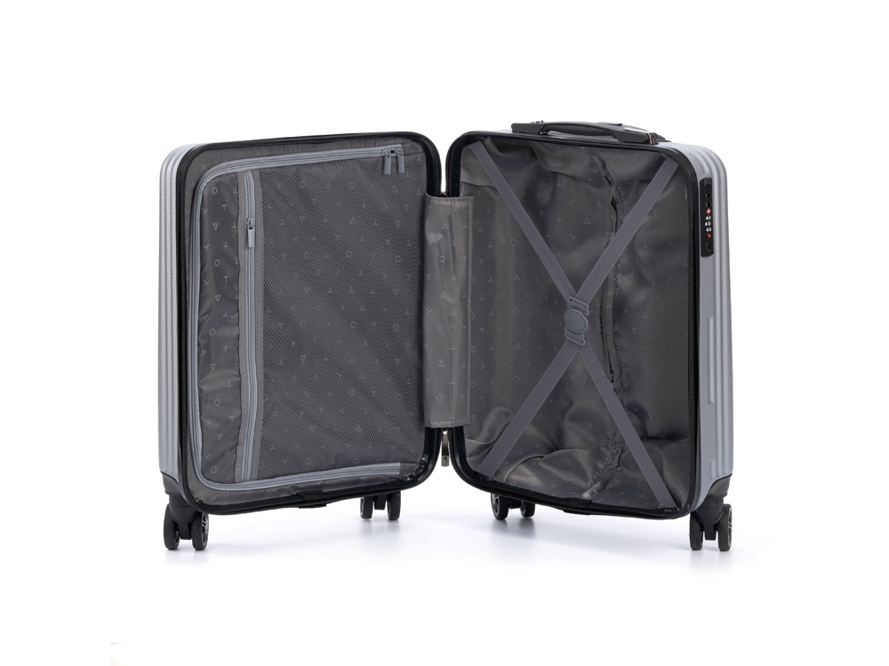 Чемодан полностью раскрывается на 2 вместительных отделения, с перегородкой на молнии и ремнями в форме X для надежной фиксации вещей на месте.