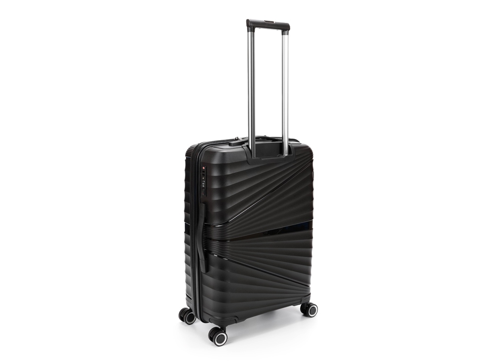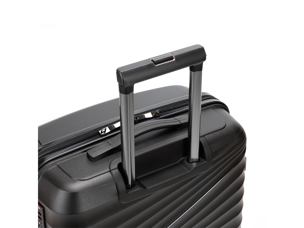 Легкая регулируемая телескопическая ручка и система из 8 колес, вращающихся на 360 градусов, обеспечивает мягкий ход и свободное движение во всех направлениях.