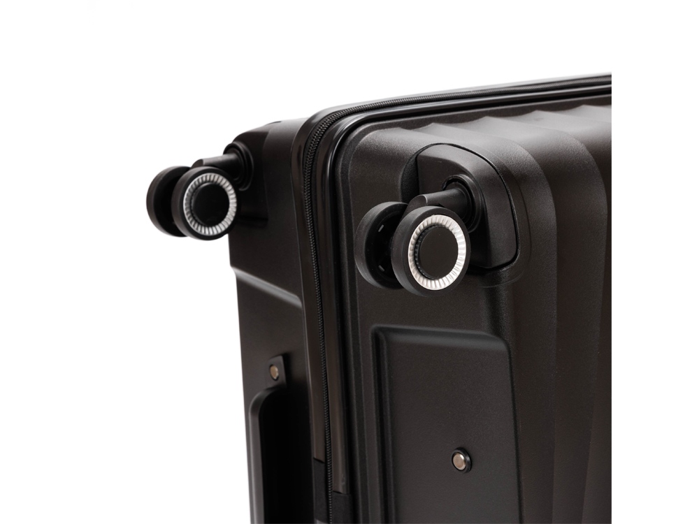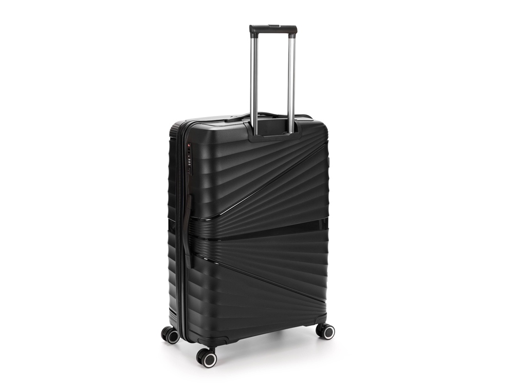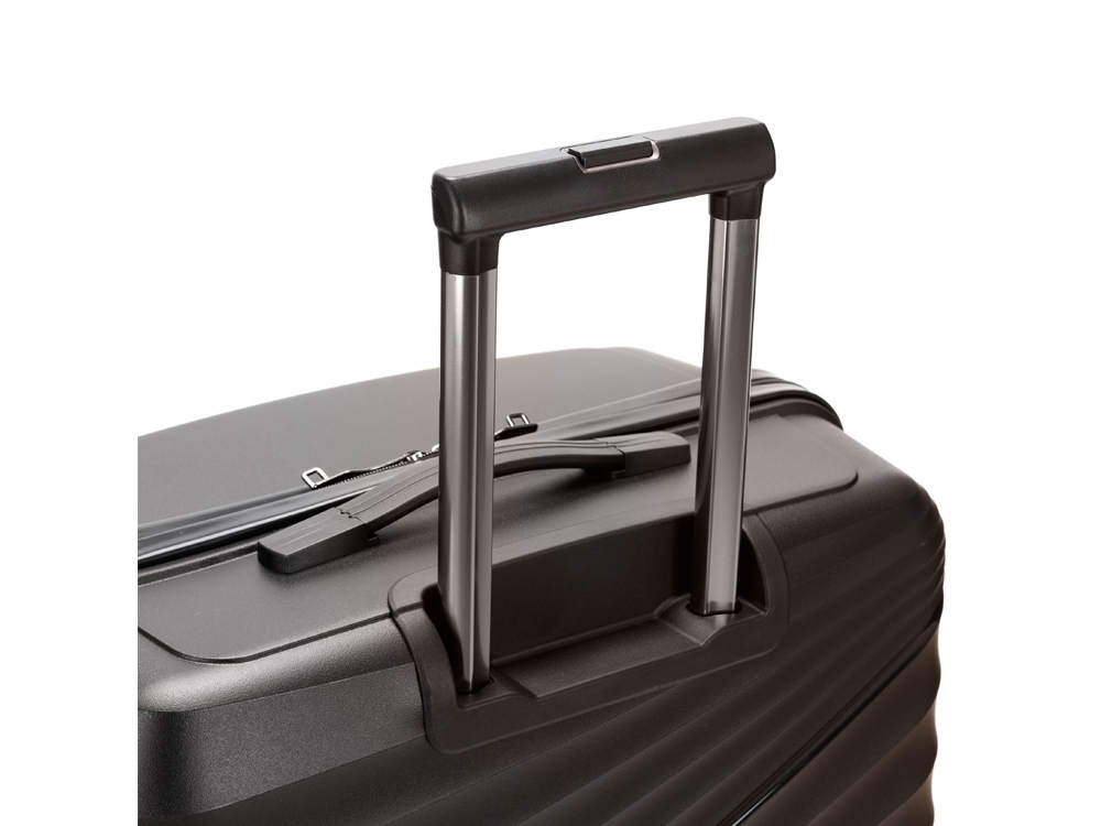 Легкая регулируемая телескопическая ручка и система из 8 колес, вращающихся на 360 градусов, обеспечивает мягкий ход и свободное движение во всех направлениях.
