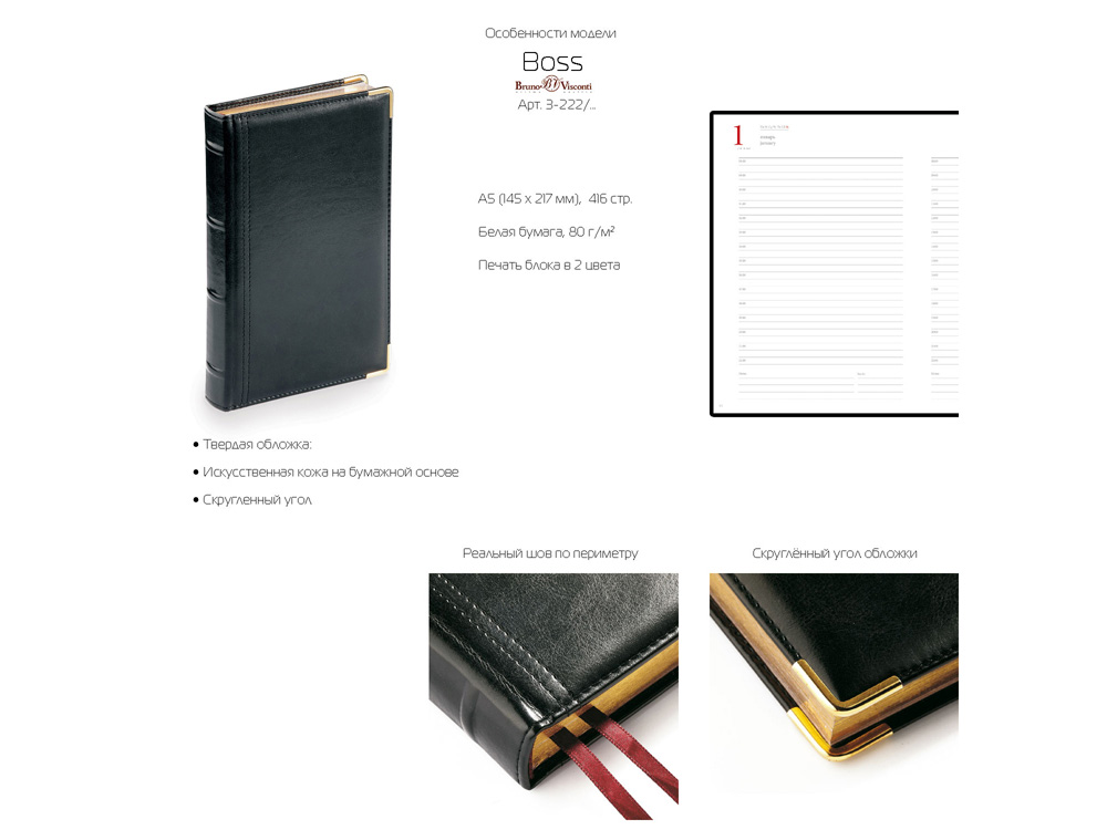 Полудатированный ежедневник Boss от бренда Bruno Visconti - это качественный корпоративный подарок по выгодной цене, произведенный специально под персонализацию. Представлен в универсальном формате А5 и состоит из 416 страниц.