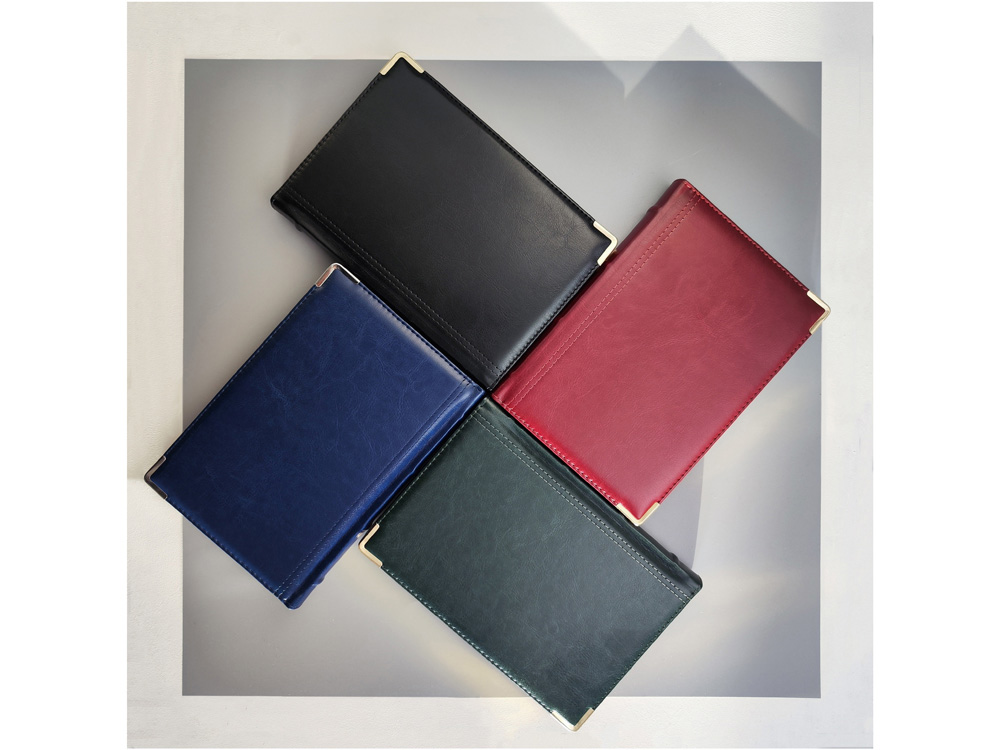 Классический деловой ежедневник линии Boss – образец элегантности. Гладкую тонкую фактуру экокожи подчеркивает декоративная строчка по контуру и металлические закругленные уголки золотистого цвета.