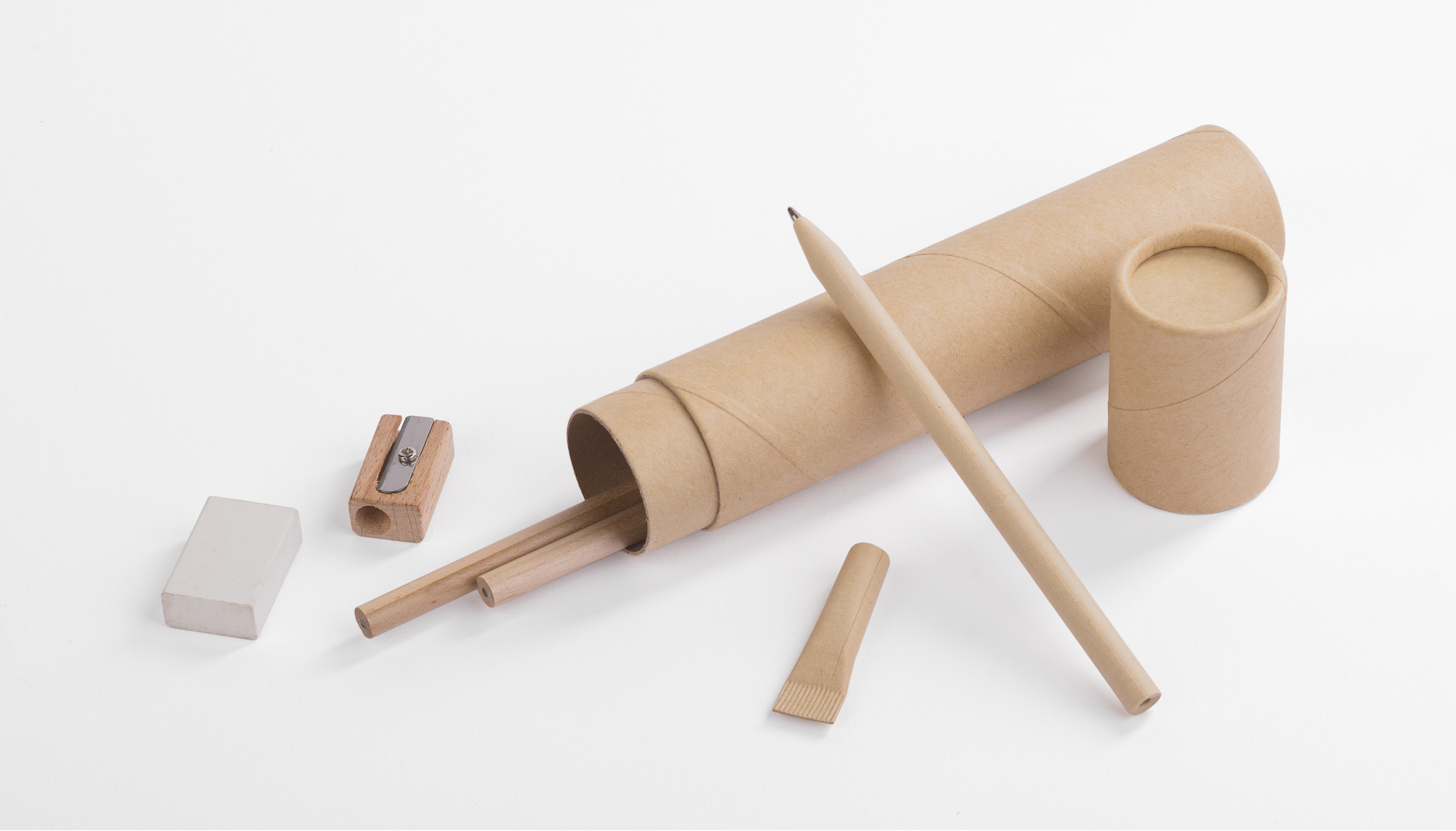 Канцелярский набор включает 5 предметов в тубусе из картона вторичной переработки. С таким набором вы точно не потеряете свои письменные принадлежности!