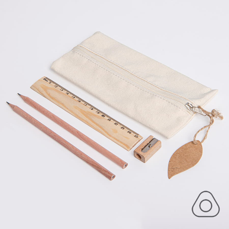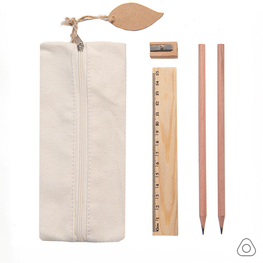 Удобный и функциональный пенал, в который входят 2 чернографитных карандаша HB с грифелем 2,0 мм, деревянная линейка 15 см и точилка из дерева со стальным лезвием. Эко пенал украшает листочек из крафтового картона, коттрый так же подходит для персонализации. -
