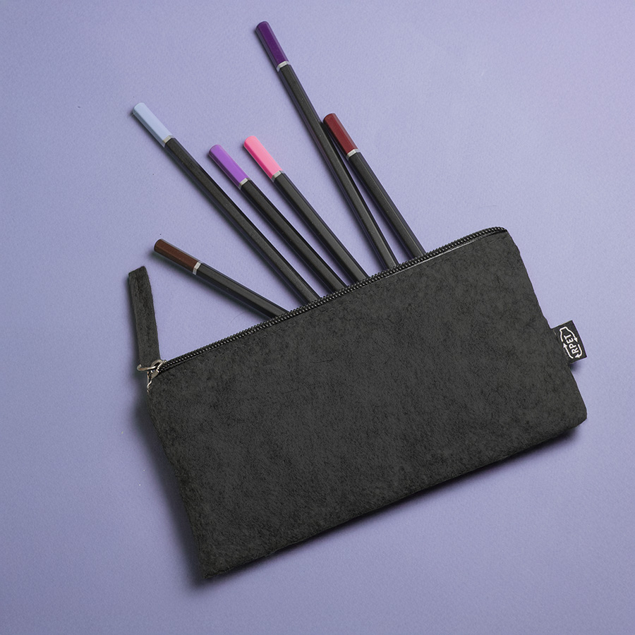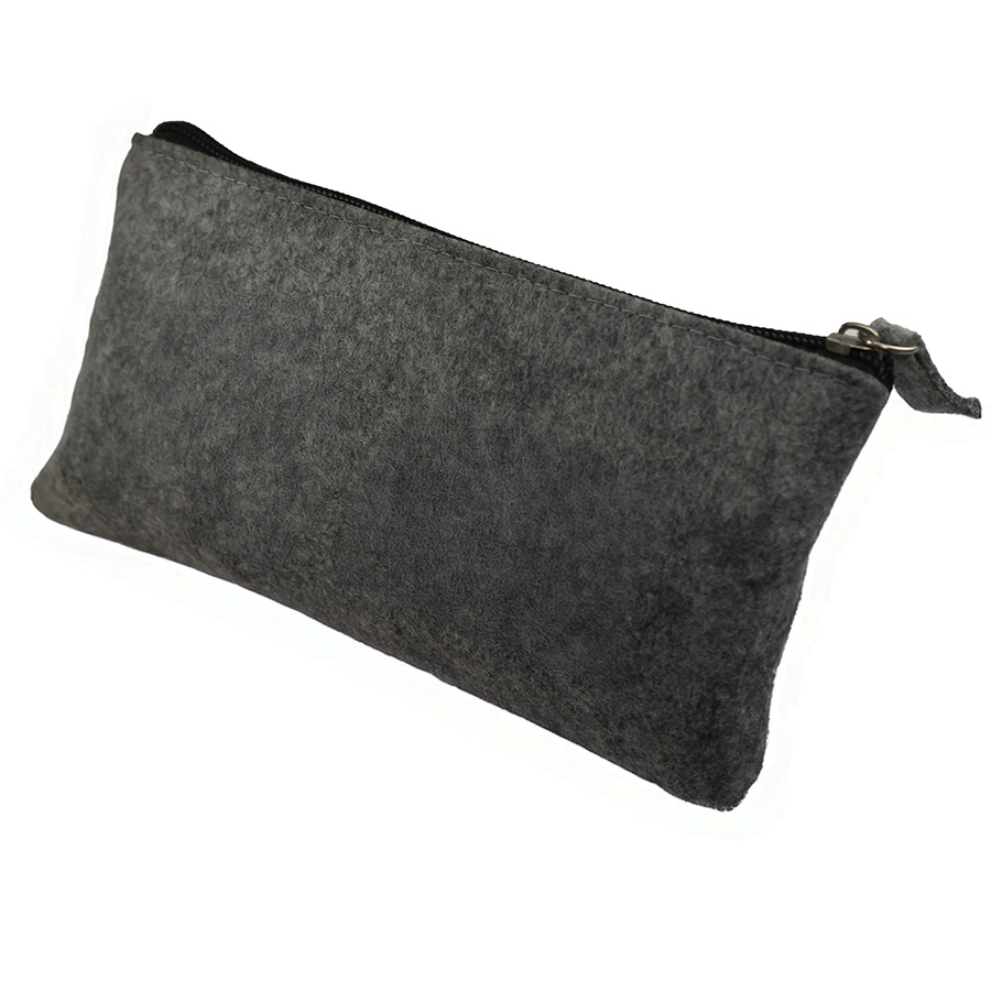Плоский пенал-косметичка из RPET фетра. Цвет темно-серый. Размер 20 х 11 см. Плотность 3 мм. Виды нанесения: обычный трансфет и DTF. -