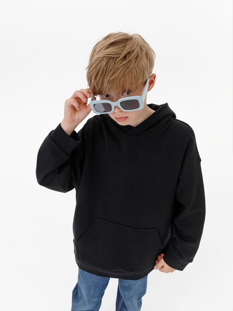 Детское худи оверсайз со спущенным плечом и карманом-кенгуру.- Прекрасно подходит для всевозможных видов нанесения благодаря использованию особо гладкой гребенной пряжи