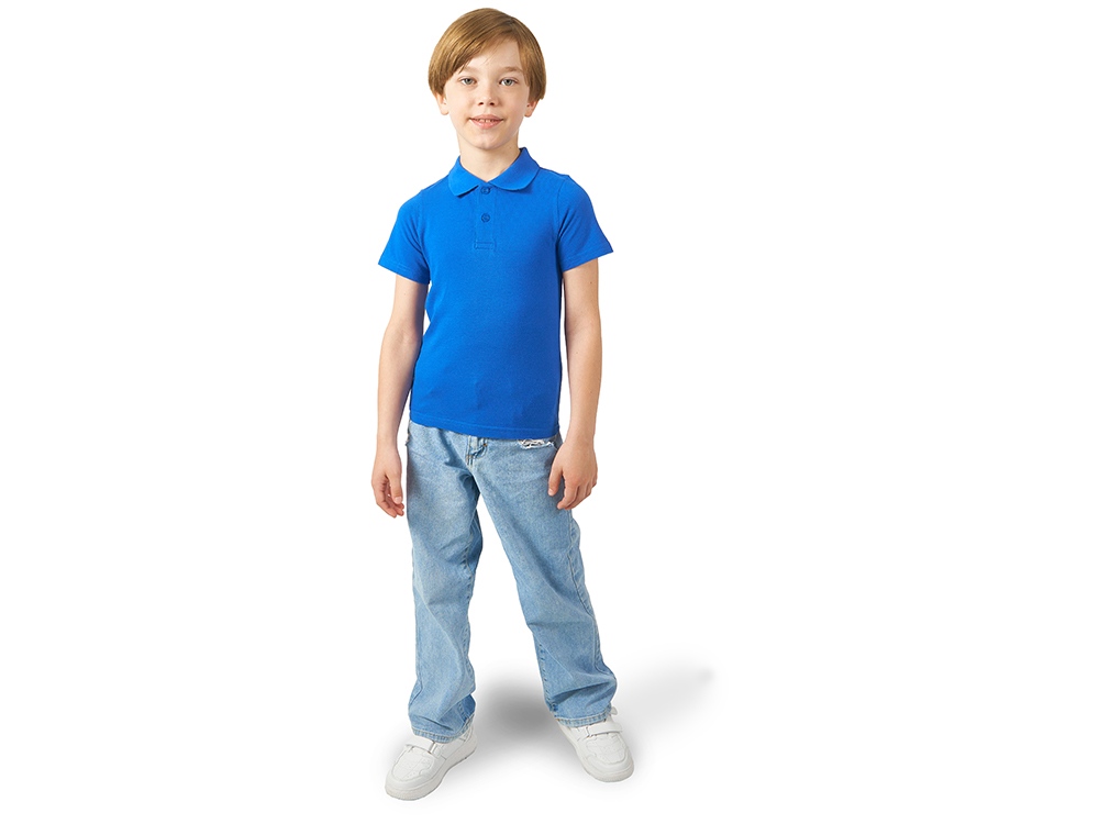 Детская рубашка поло First. Воротник 1х1. Обшивка внутри воротника. Мужская и детская модели с 2 пуговицами, женская - с 4 пуговицами. Пуговицы с гравировкой в тон. Пике, 100% хлопок. 160 г/м². -