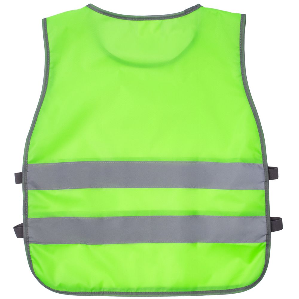 Детский светоотражающий жилет с застежкой-липучкой с одной стороны. Надевается через голову.
