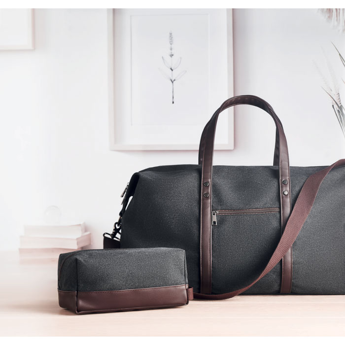 Сумка для выходных из высококачественной жатой парусины плотностью 450 г/м² с фурнитурой из переработанного ПУ. Подкладка RPET 210D. Прочная регулируемая съемная шлейка. Имеет размер ручной клади. -