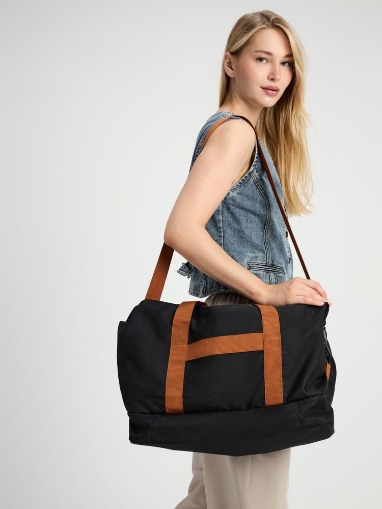 Дорожная сумка Incluso — надежный спутник в краткосрочной поездке, будь то командировка или выезд на уикенд. Также она с легкостью станет незаменима для спортзала. Изготовлена из прочного материала, оснащена удобными ручками и регулируемым плечевым ремнем, что обеспечивает комфорт при переноске. В сумке предусмотрено специальное отделение для обуви.- Объем 35 л