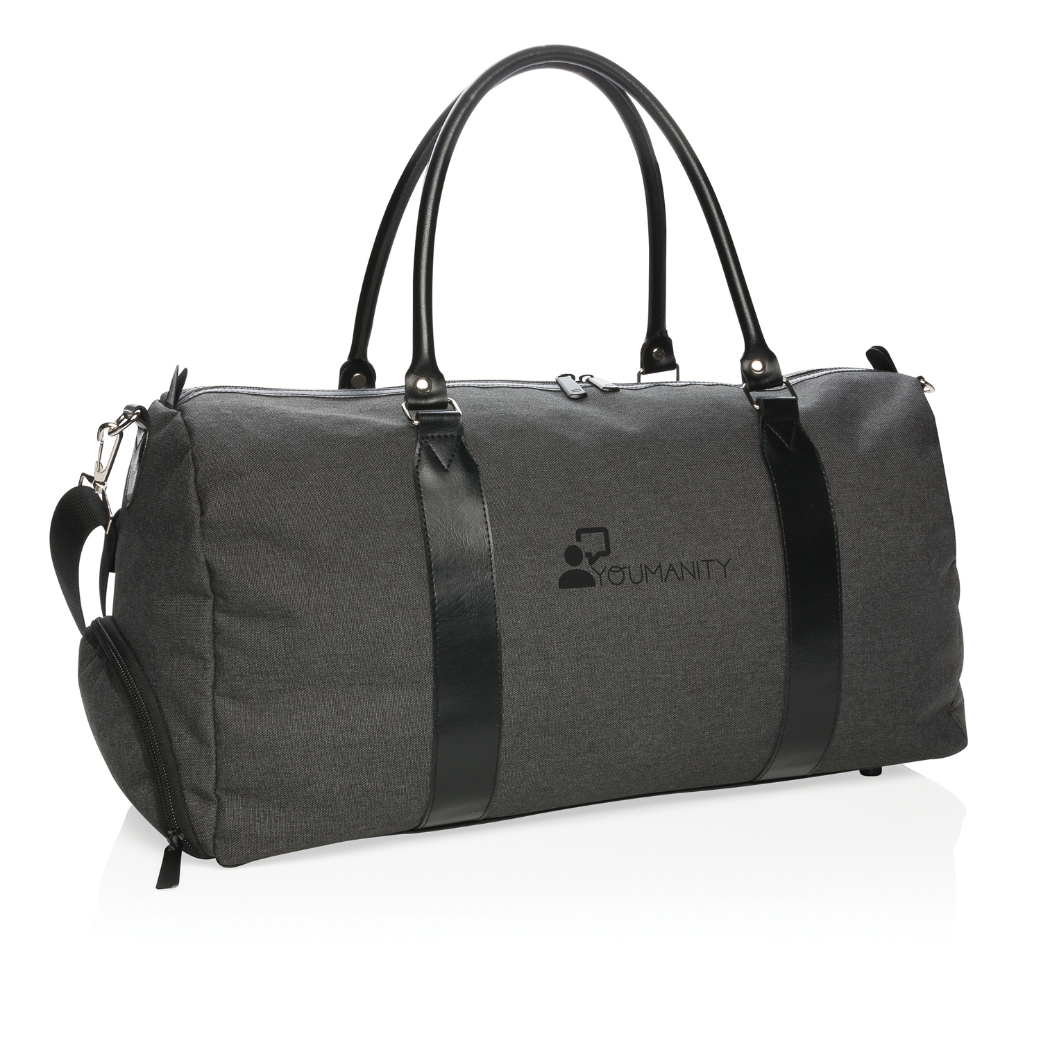 Сумка со встроенным USB - портом выполнена в лаконичном минималистическом дизайне из полиэстера 600D. Ручки и стильные элементы на сумке изготовлены из полиуретана, также на сумке предусмотрен удобный плечевой ремень. Во вместительном основном отделении найдется место для всего, что может пригодиться в поездке или на спортивной тренировке. Подключите телефон к интегрированному USB-порту на боковой части сумки, и вы сможете заряжать свои мобильные устройства на ходу. Небольшой наружный карман отлично подойдет для всех важных мелочей, которые всегда должны быть под рукой. Не содержит ПВХ.