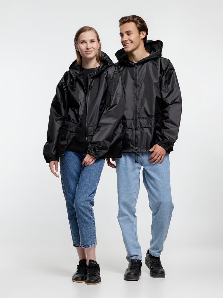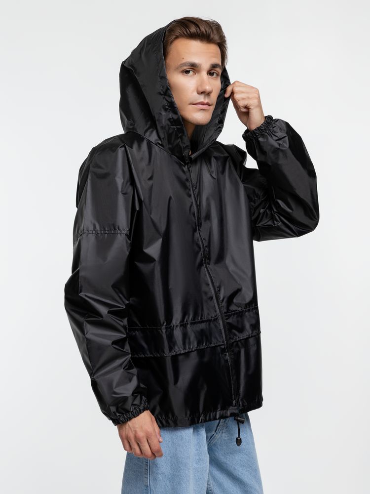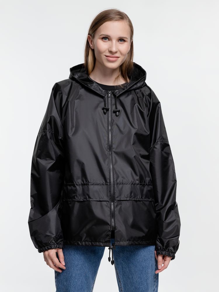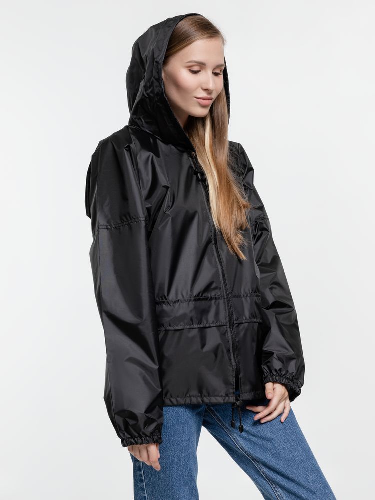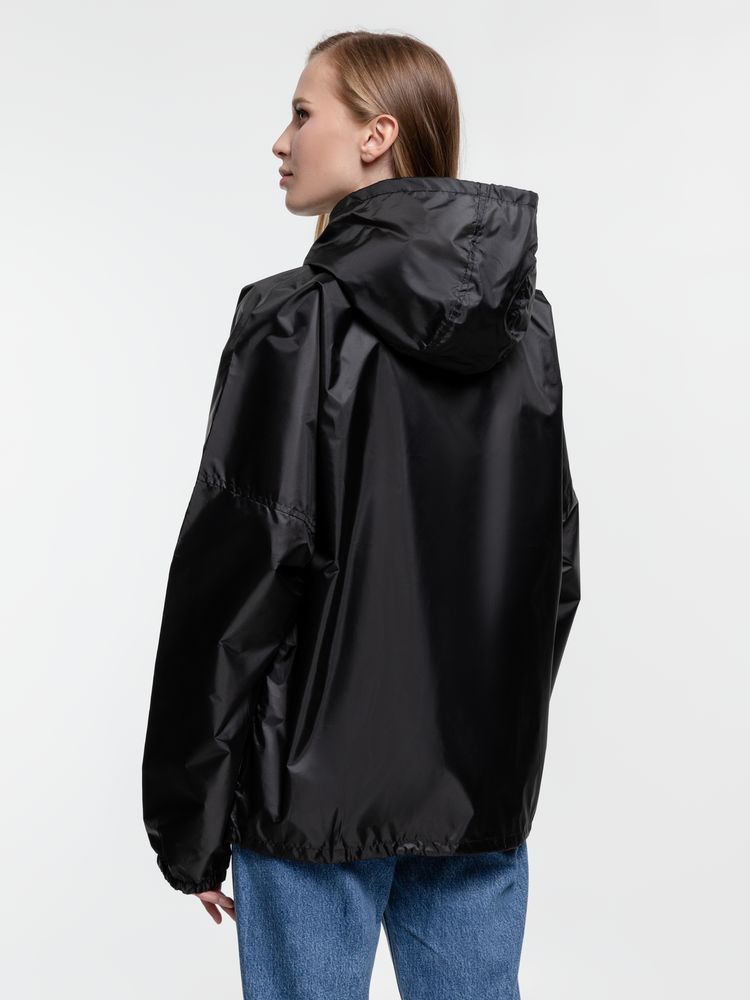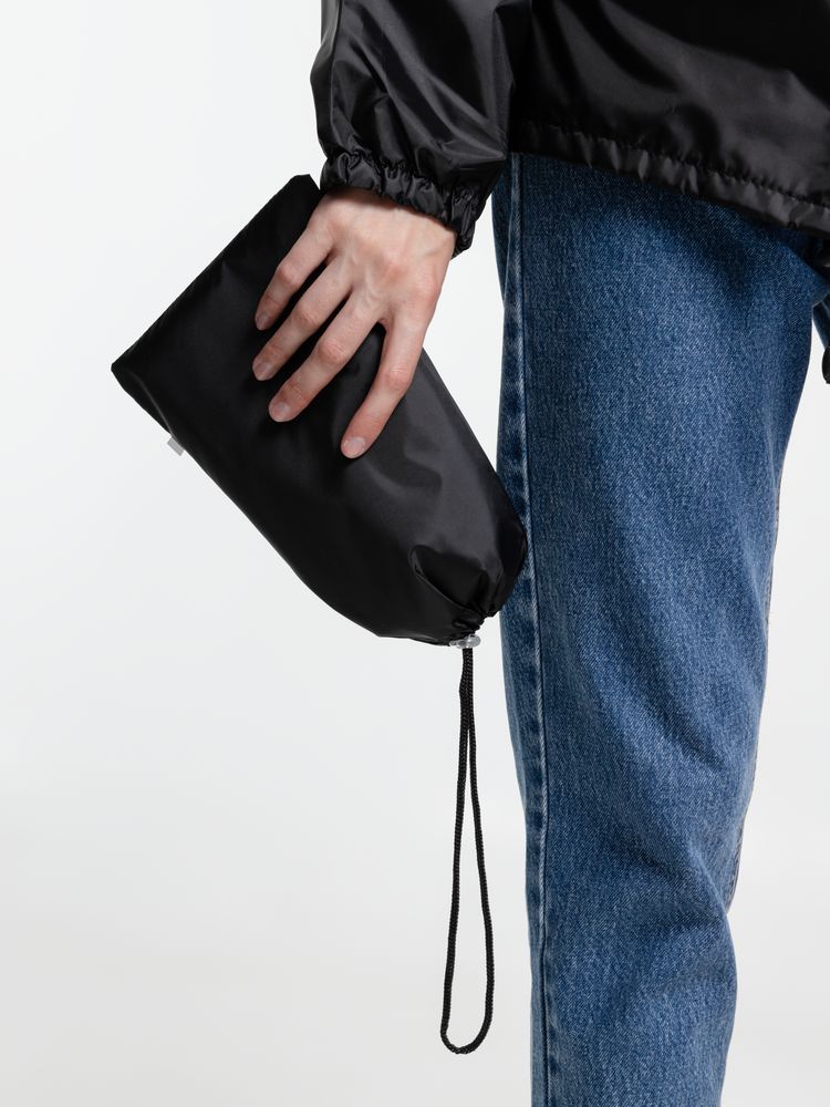 Укороченный дождевик свободного кроя из ткани таффета с влагозащитным покрытием. Складывается в мешочек — удобно брать с собой.- Два накладных кармана надежно закрыты клапанами и защищены от дождя