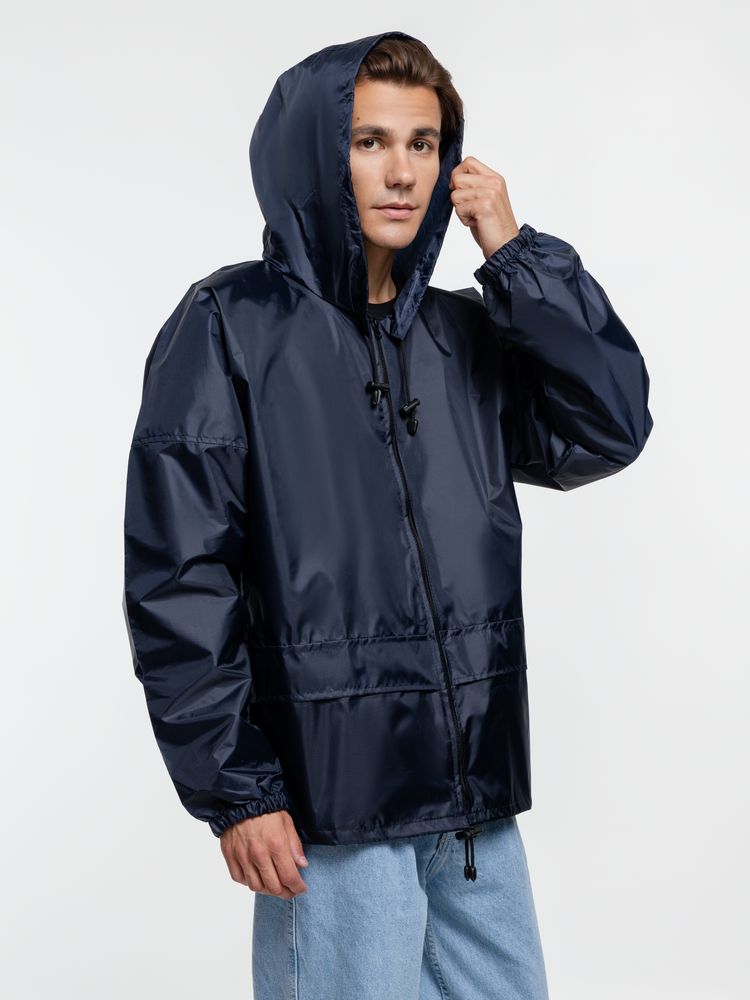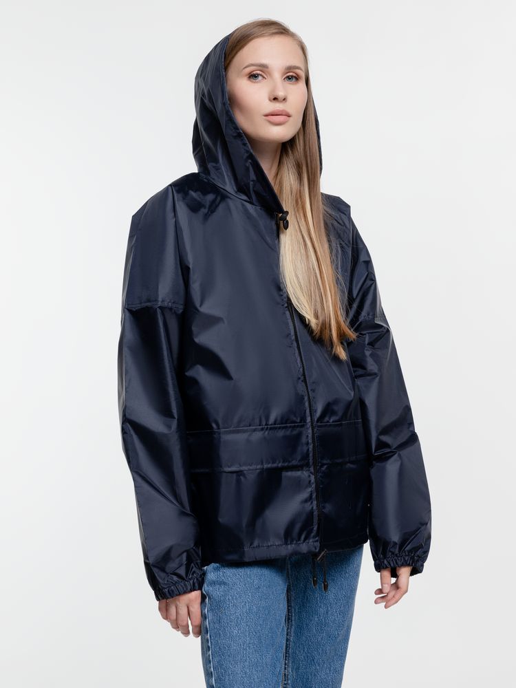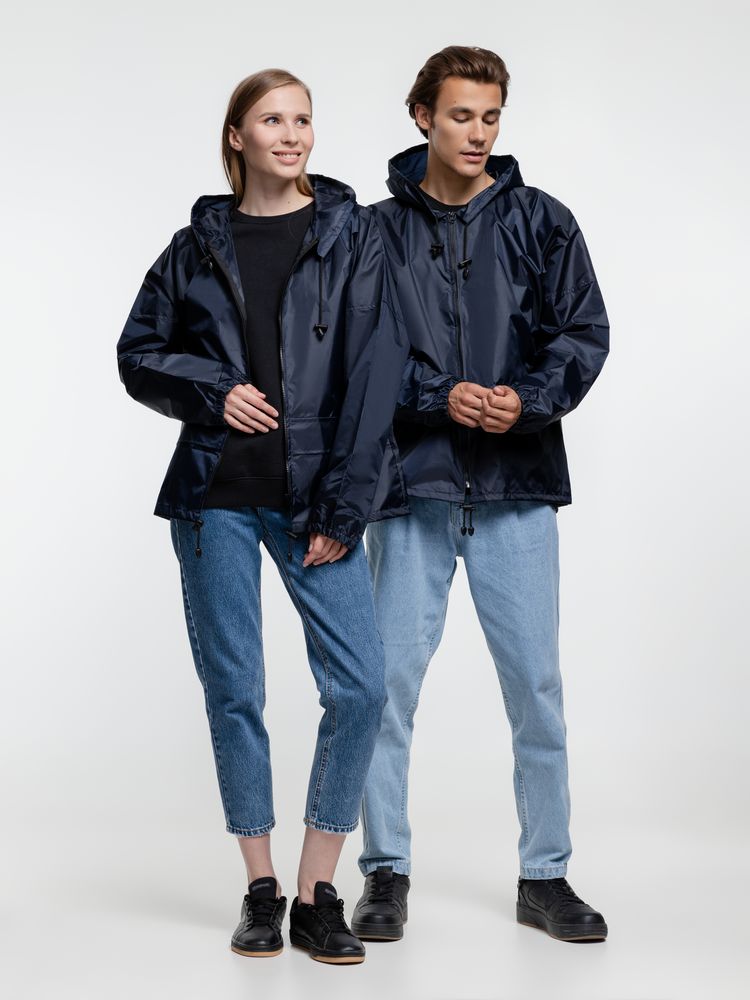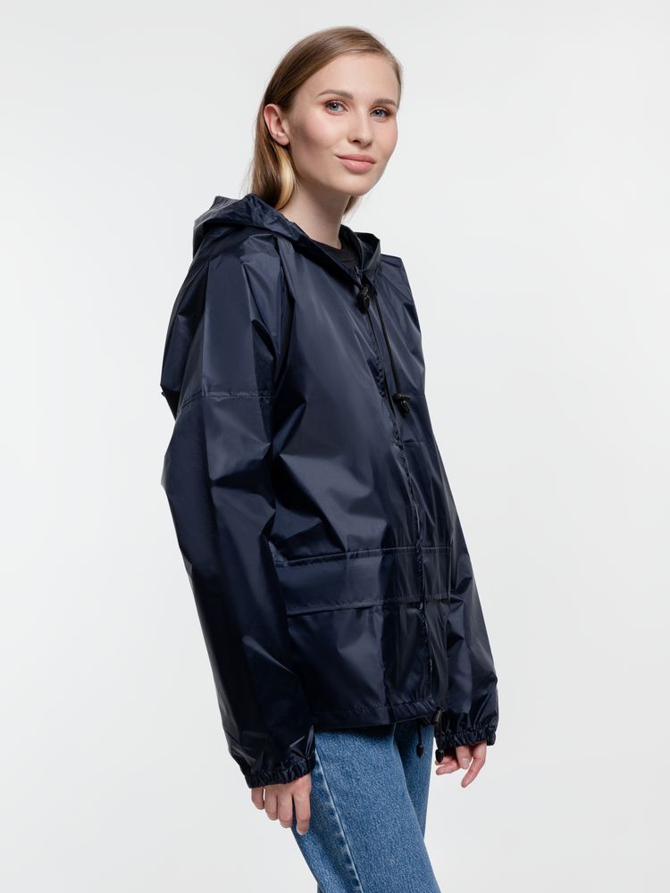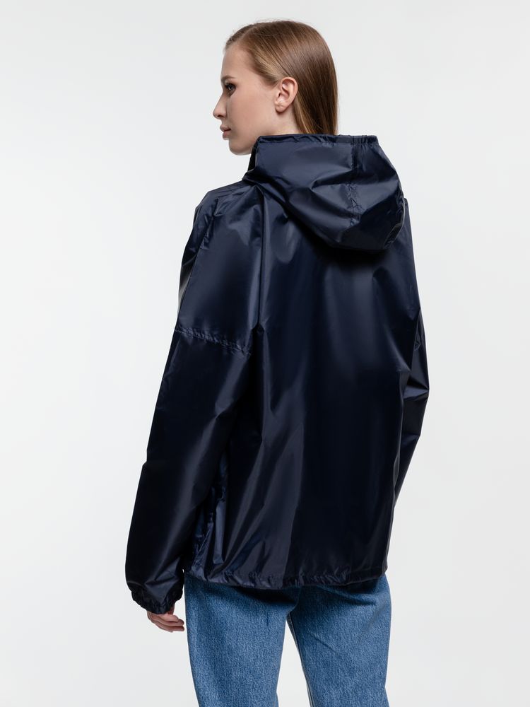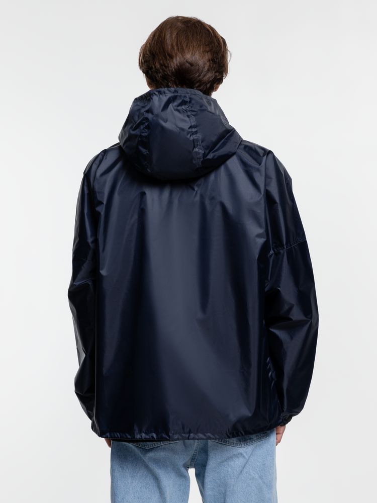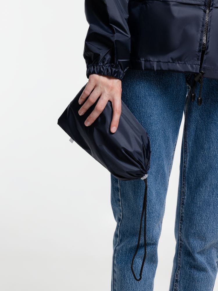 Укороченный дождевик свободного кроя из ткани таффета с влагозащитным покрытием. Складывается в мешочек — удобно брать с собой.- Два накладных кармана надежно закрыты клапанами и защищены от дождя