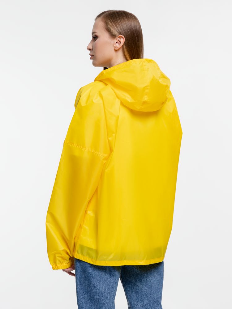 Укороченный дождевик свободного кроя из ткани таффета с влагозащитным покрытием. Складывается в мешочек — удобно брать с собой.- Два накладных кармана надежно закрыты клапанами и защищены от дождя