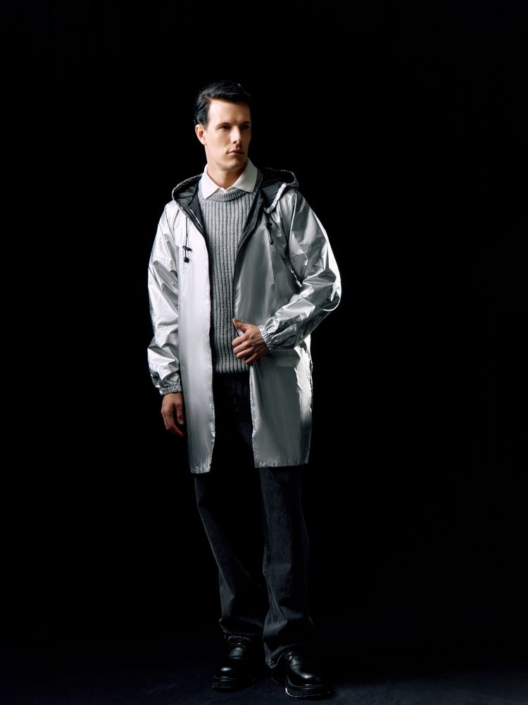 Плащ-дождевик из ткани таффета на молнии с капюшоном. Складывается в мешочек — удобно брать с собой.- Удлиненная модель унисекс