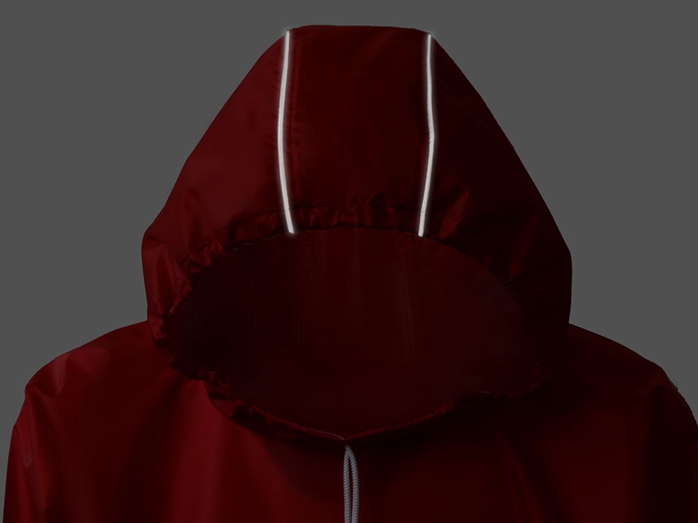Швы капюшона и рукавов отделаны светоотражающим кантом, который делает человека заметным даже в темное время суток. Для комфортной посадки — затягивающийся на шнурок капюшон с фиксатором и манжеты на резинке.