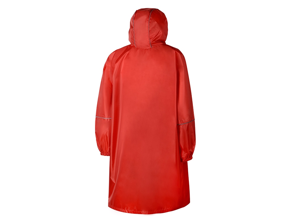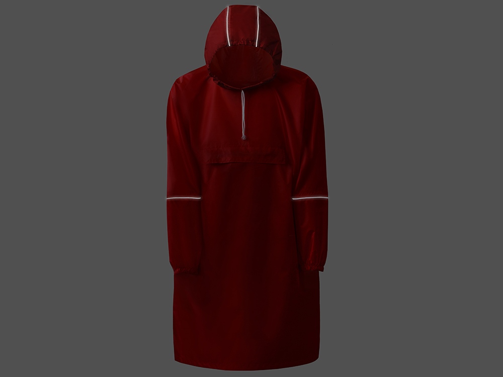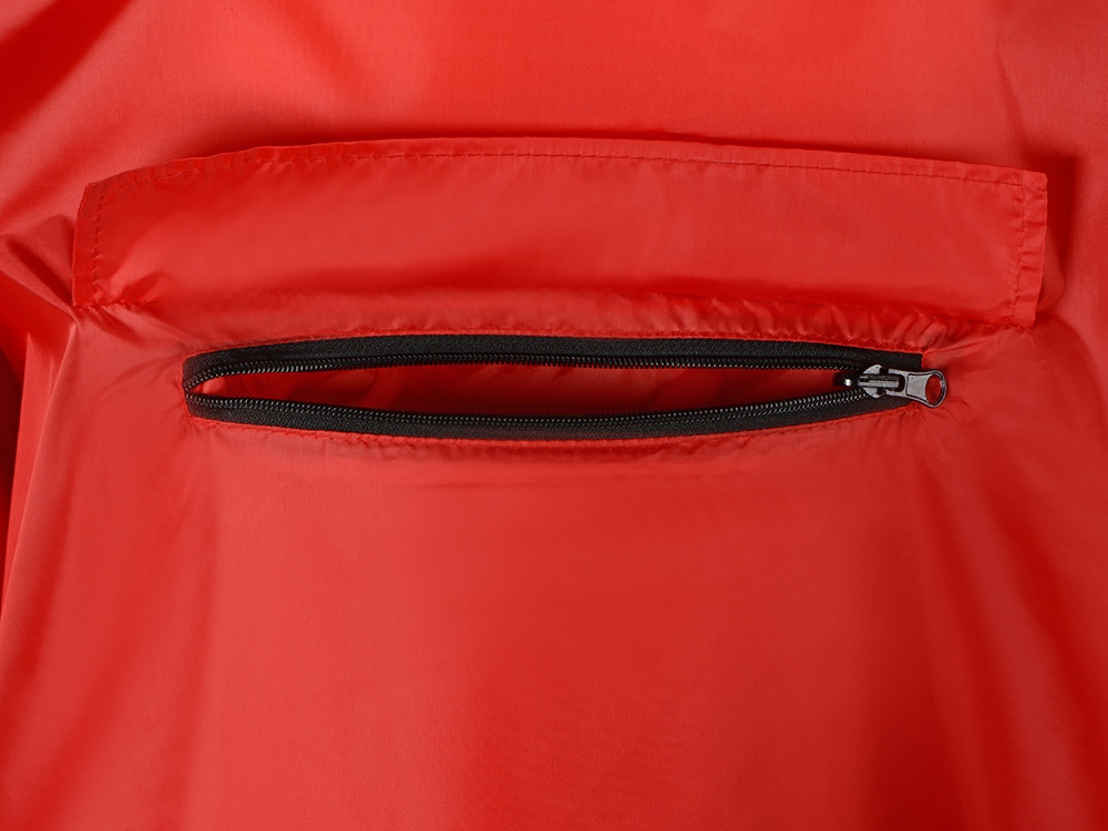 Дождевик - пончо прямого силуэта. Нагрудный карман плаща закрывается на молнию, которая дополнительно защищена клапаном, а еще в него можно полностью убрать дождевик. На дне кармана — ручка-петелька, которая в сложенном виде может использоваться для подвешивания.