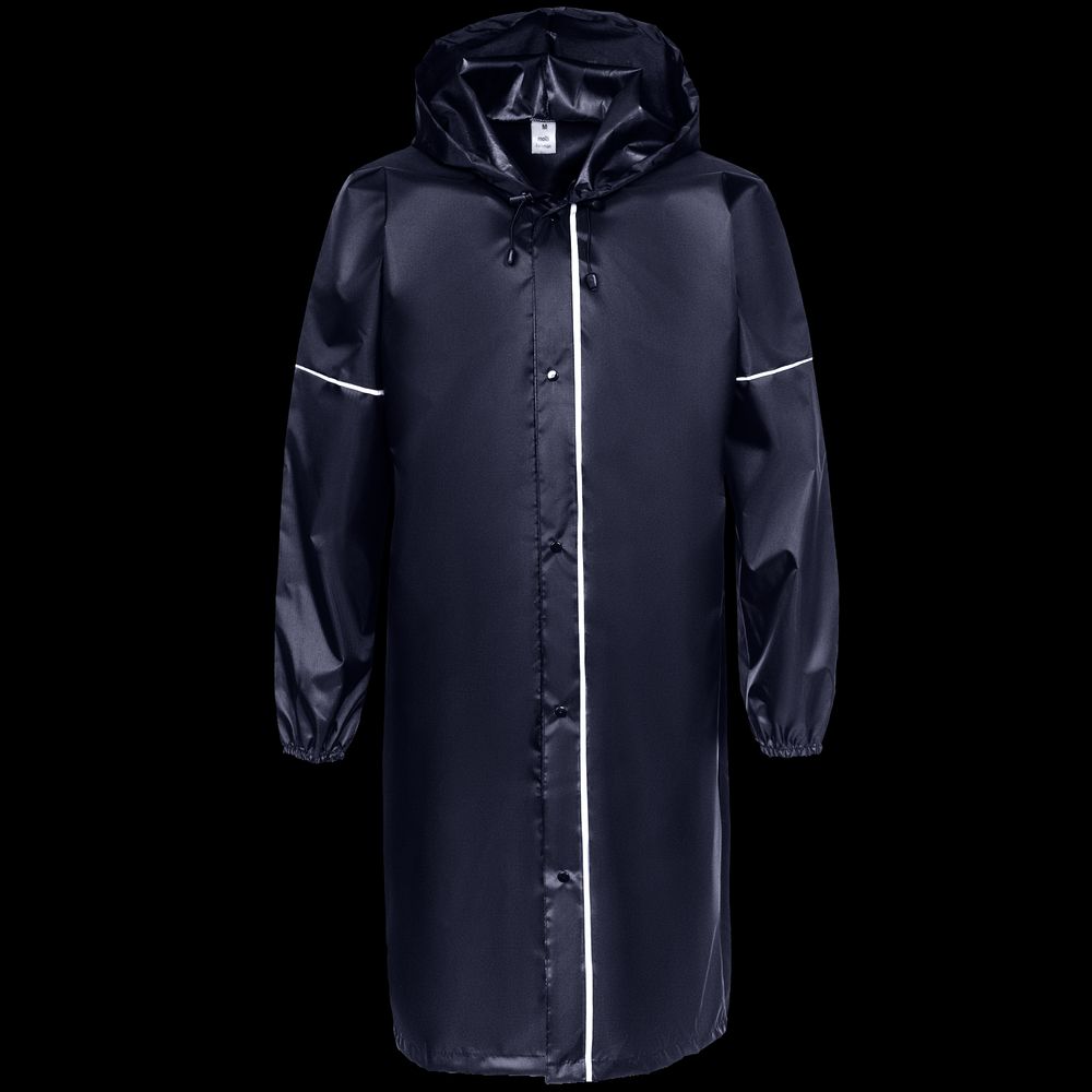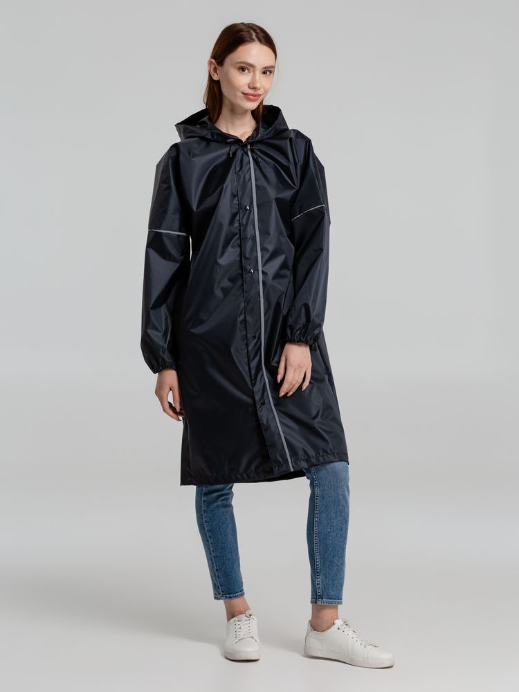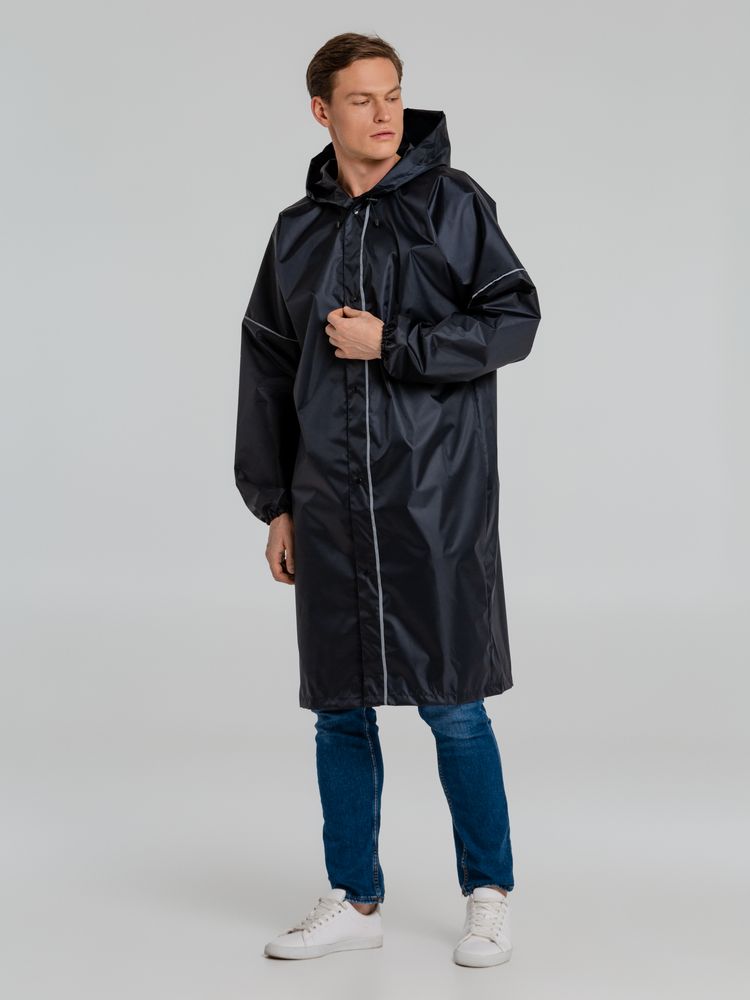 Плащ-дождевик из ткани оксфорд на кнопках с капюшоном. Световозвращающие элементы на рукавах и планке позволяют быть замеченным в темное время суток.- Удлиненная модель