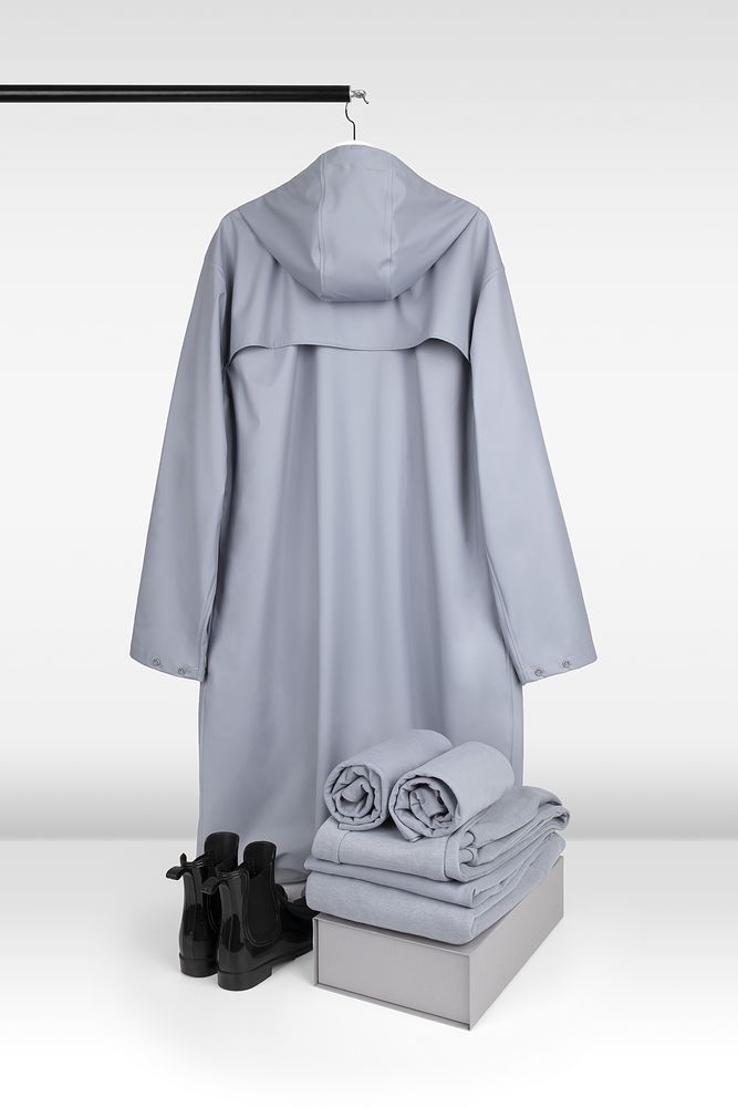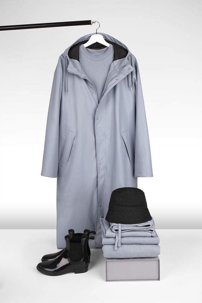 Плащ-дождевик с капюшоном из полиэстера с полиуретановым непромокаемым покрытием.- Абсолютно водостойкие швы благодаря методу спаивания деталей кроя позволяют использовать дождевик даже в шторм