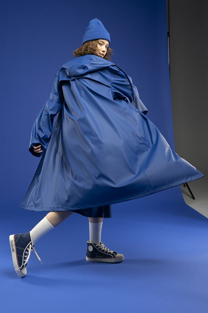 Плащ-дождевик с капюшоном из полиэстера с полиуретановым непромокаемым покрытием.- Абсолютно водостойкие швы благодаря методу спаивания деталей кроя позволяют использовать дождевик даже в шторм