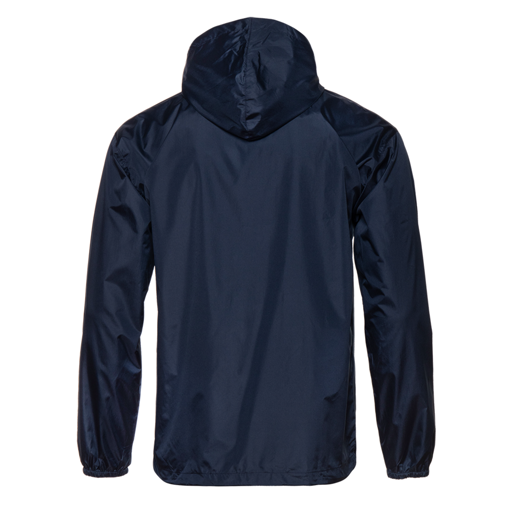 Ветровка прямого силуэта с глубоким капюшоном, спущенной линией плеча, прорезным карманом и застежкой на молнию. Для дополнительной защиты от ветра изделие дополнено эластичной резинкой на рукаве и кулисой по линии низа.