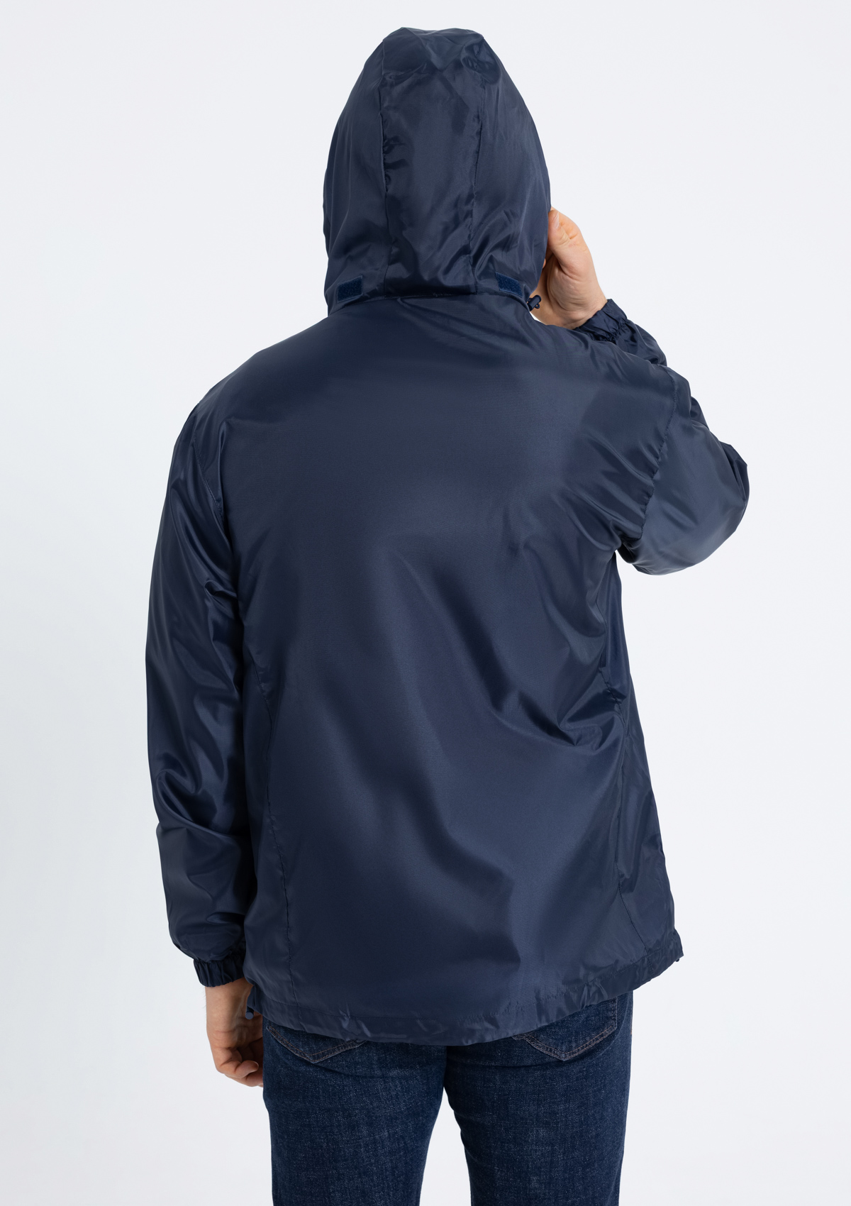 Ветровка прямого кроя с потайным капюшоном, воротником-стойкой, втачным рукавом, двумя внешними карманами и одним потайным, фиксирующимся на ленту велкро. Легкая и эргономичная модель дополнена флисовым подкладом, для поддержания комфортной температуры внутри изделия.