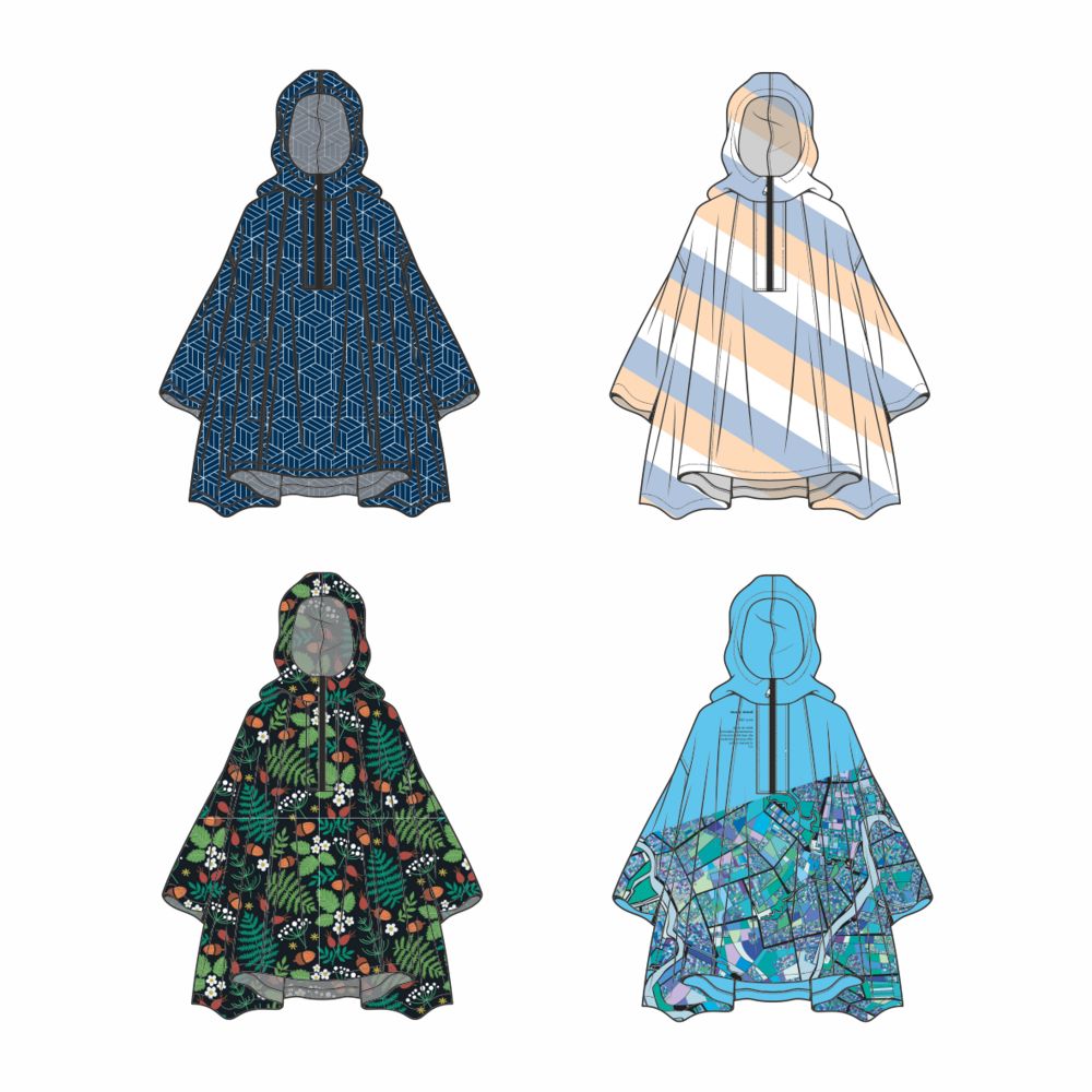 Легкий городской дождевик-пончо с регулируемым капюшоном из влагоустойчивого материала подходит для защиты в непогоду, свободно одевается поверх одежды и небольшого рюкзака.