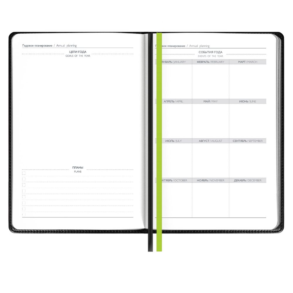 Ежедневник Alanis, недатированный, черный с зеленым