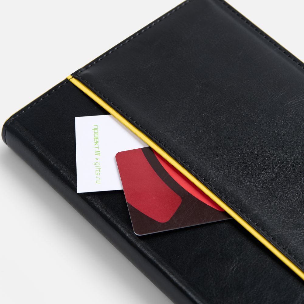Ежедневник с твердой обложкой из искусственной кожи Sarif, дополнен карманом, капталом и двойным ляссе.