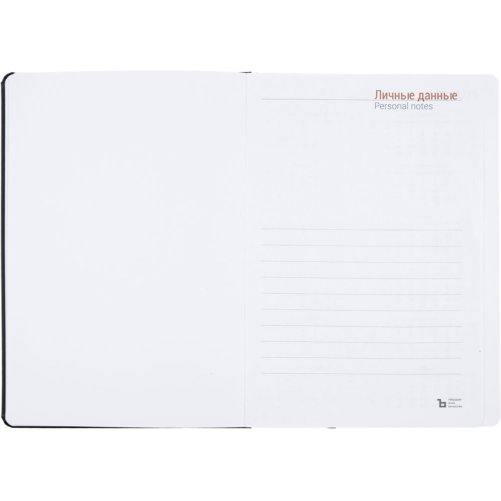 Ежедневник с твердой обложкой, выполнен из материала Latte, черный АА, дополнен ляссе в цвет обложки.Блок 207, с информационным блоком: