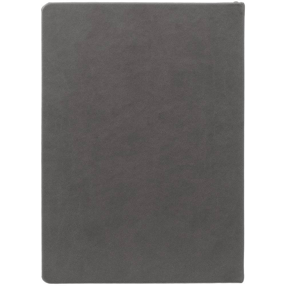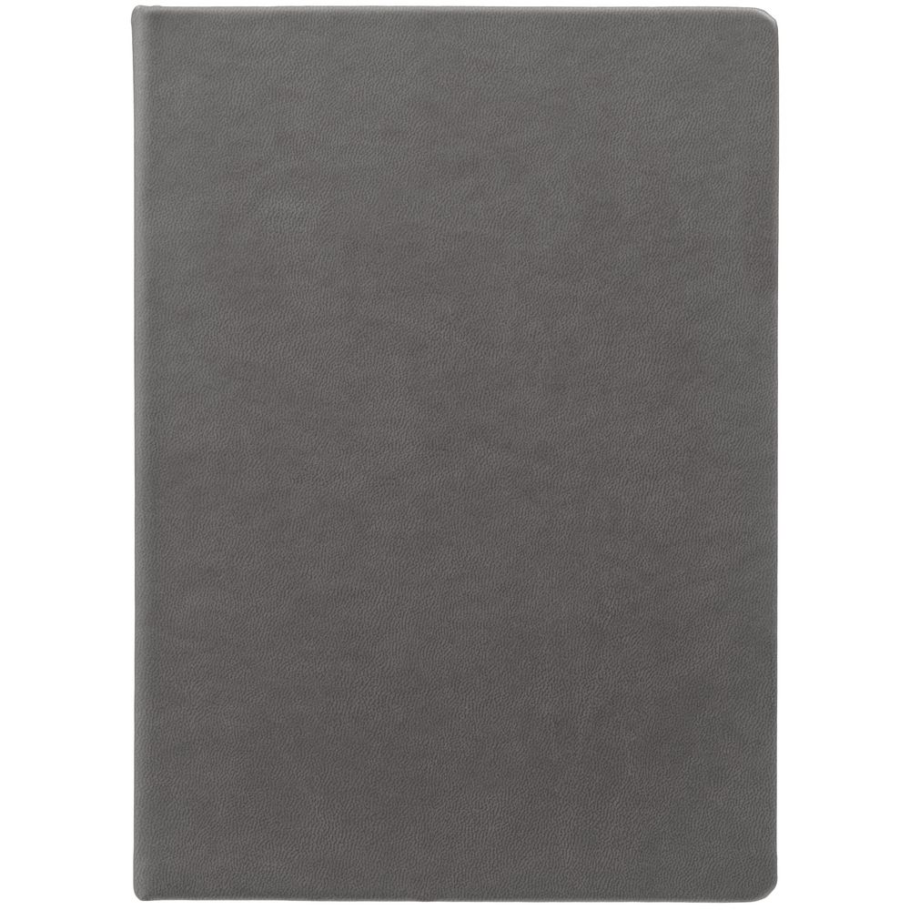 Ежедневник с твердой обложкой и тонированным обрезом. Выполнен из материала Latte, темно-серый, дополнен ляссе в цвет обложки.