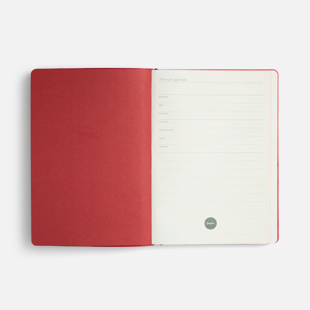 Ежедневник с гибкой обложкой, выполнен из материала Cowhide, дополнен ляссе в цвет обложки.